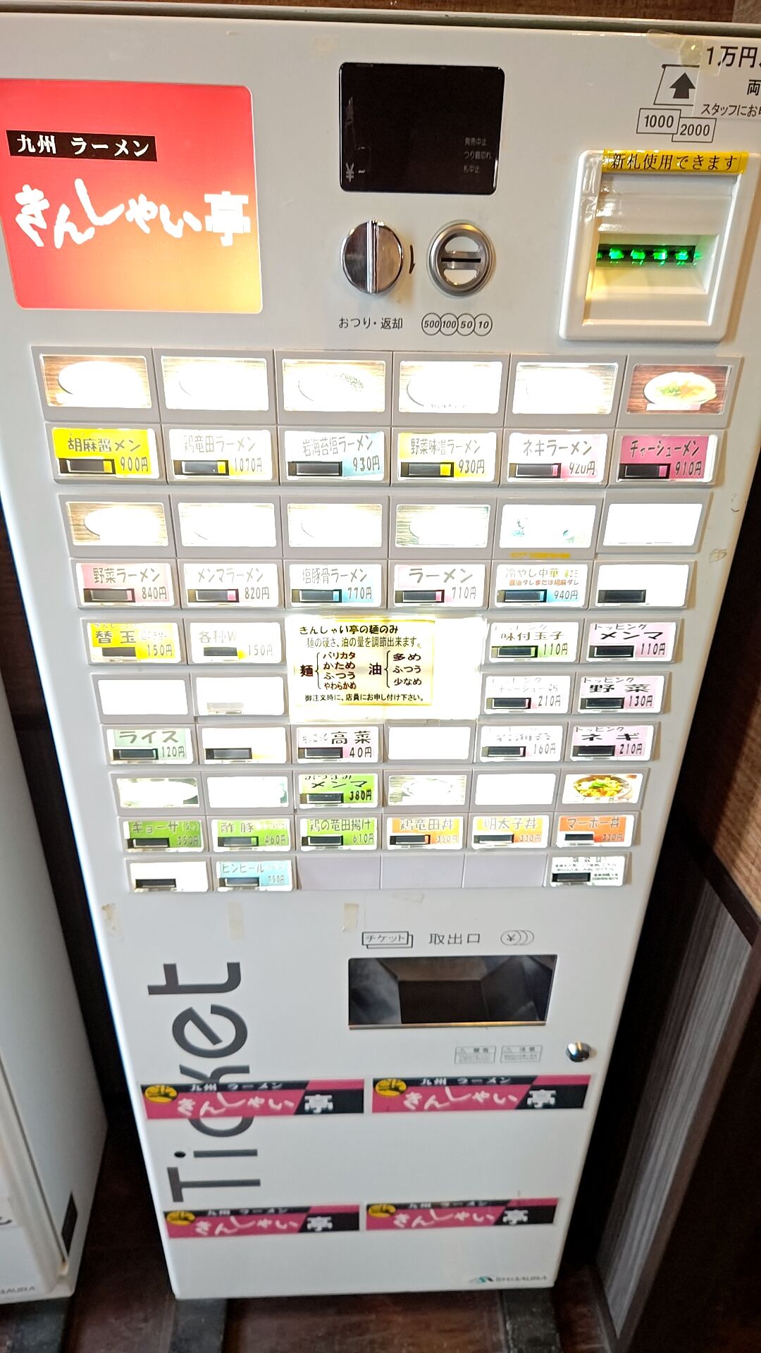 券売機の前に立ったら迷わず塩豚骨ラーメンをチョイス