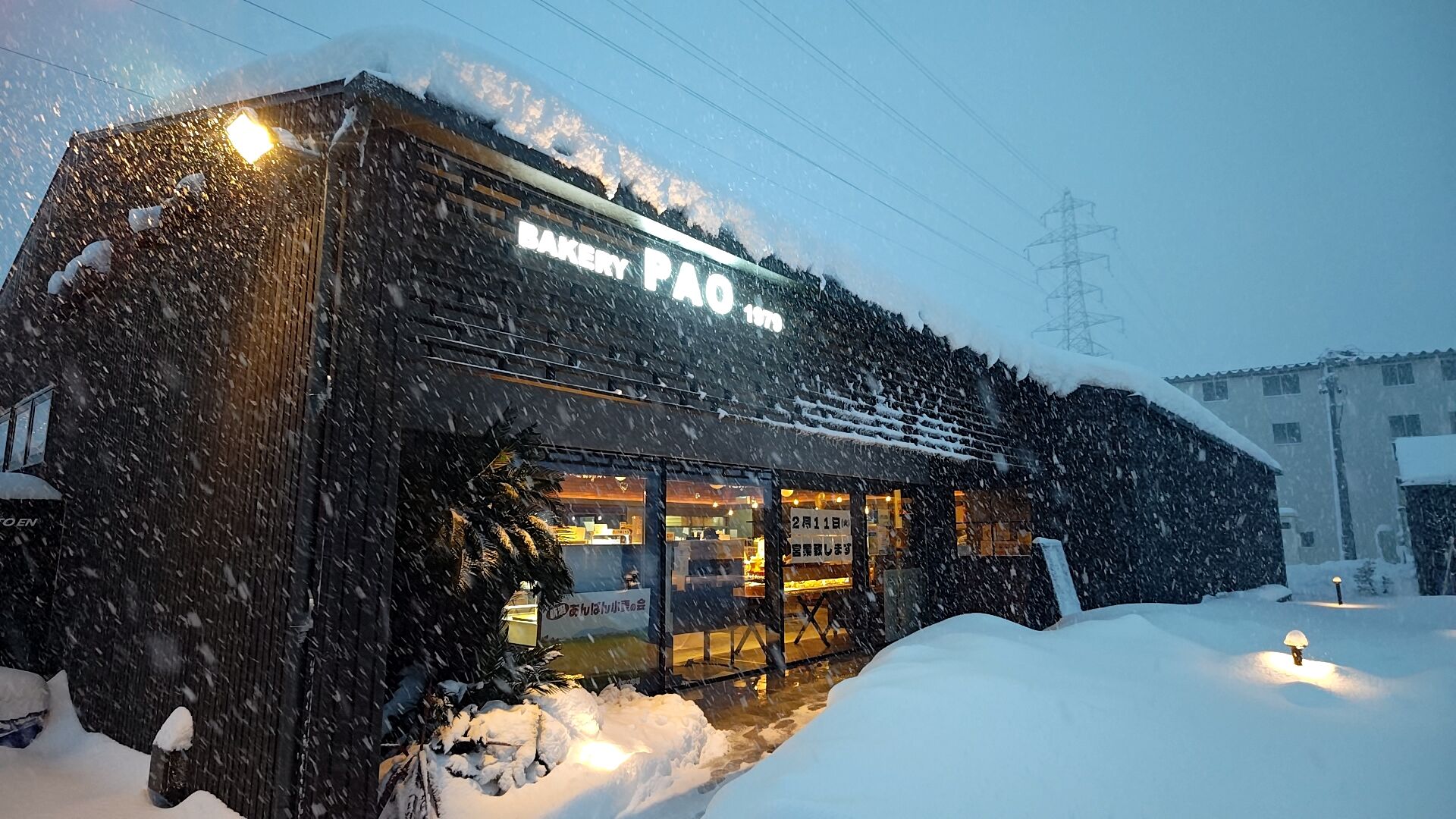 パオでも消雪用に水流してるとはいえ店員さんも雪かきしてました。