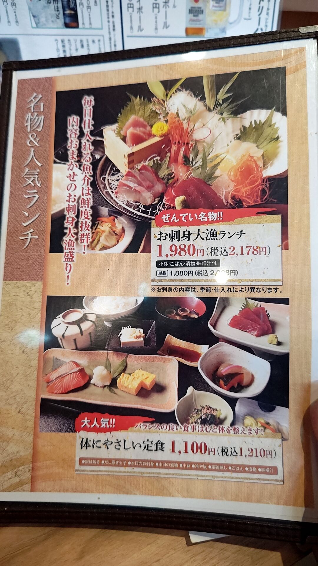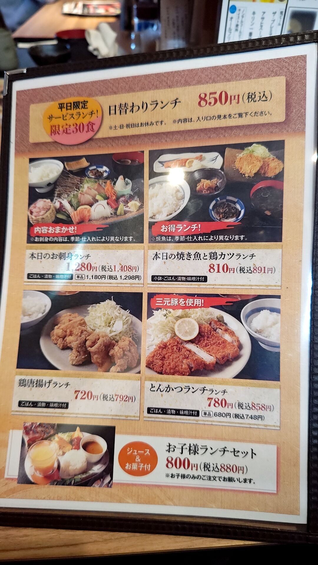 お刺身ランチ美味そうだが、焼き魚が気になるから本日の焼き魚と鶏カツランチで行こう!