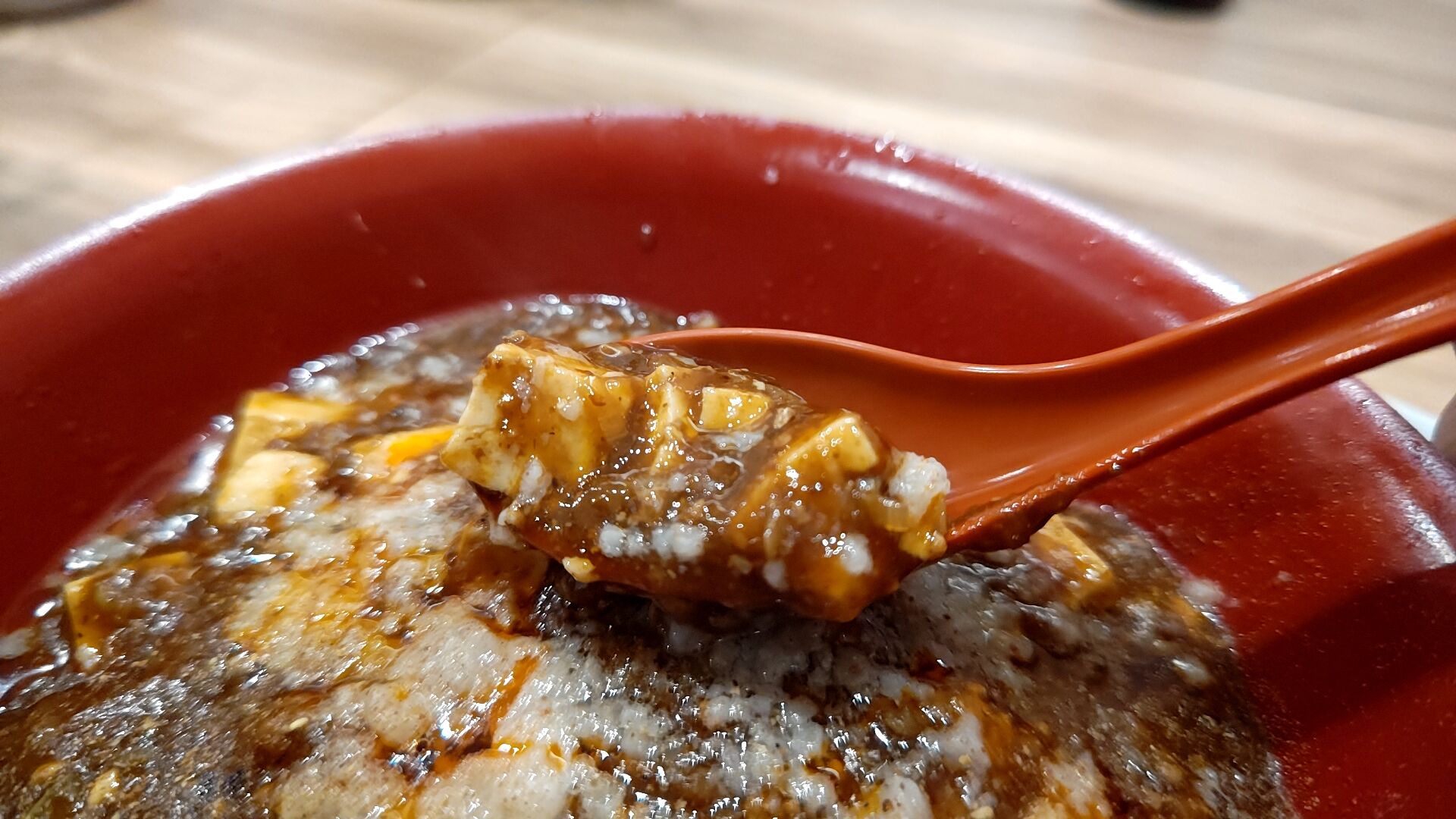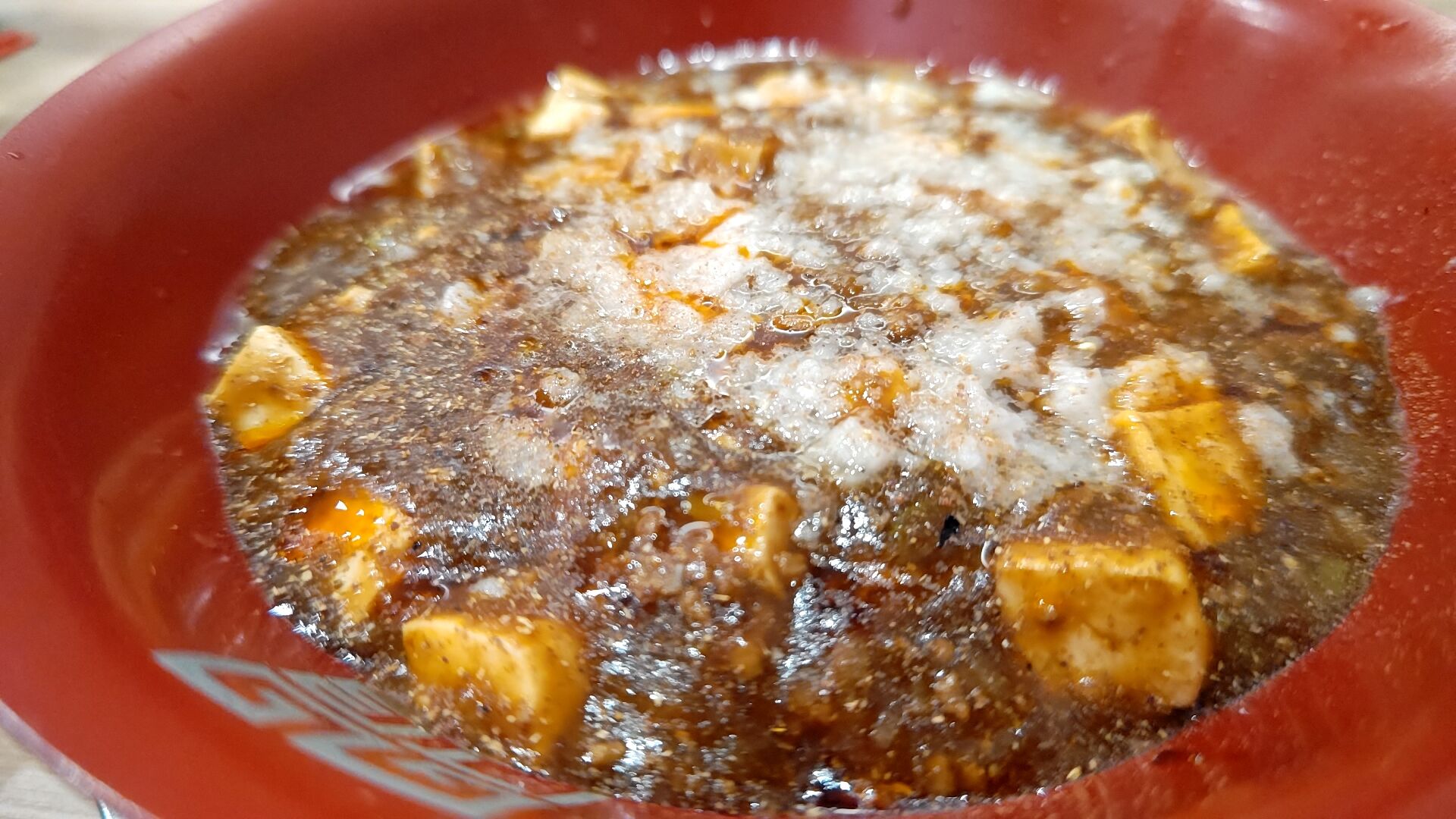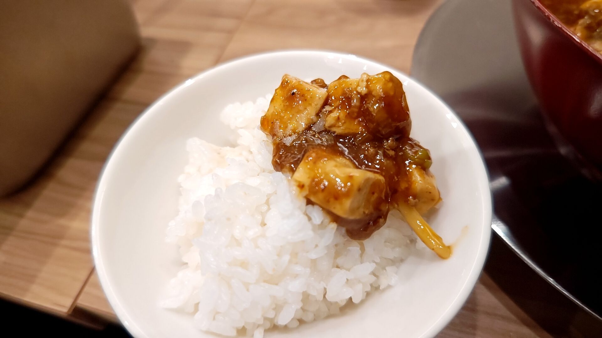 ご飯もサービスで付いてきたので、勿論麻婆オンザライス!
