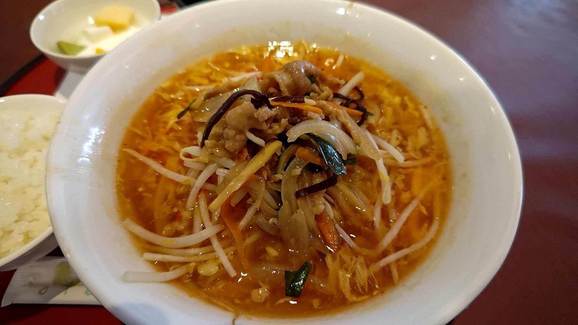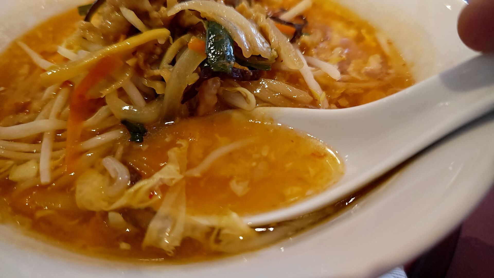 豚とネギのサンラー麺がまさか日本よりでかい 普通盛りが出てくるとは思わないじゃん・・・?