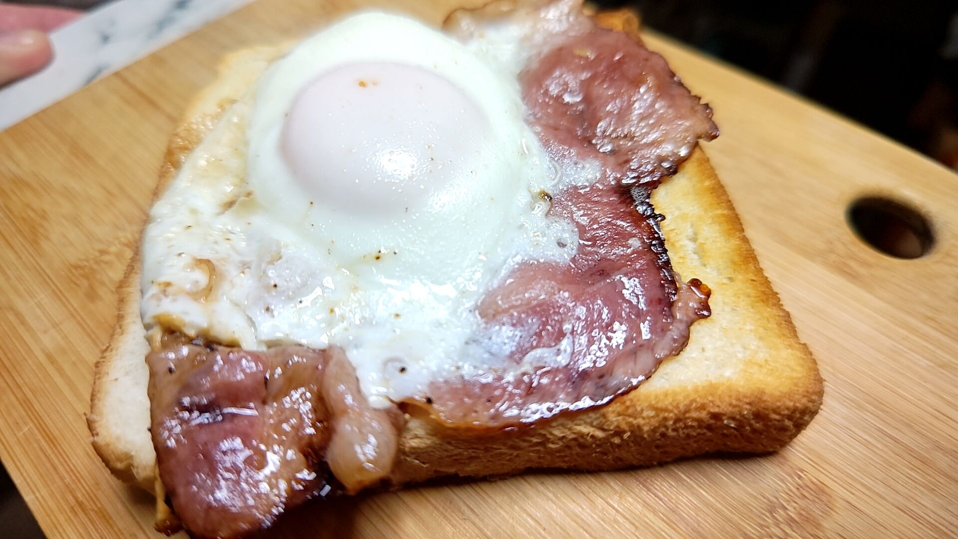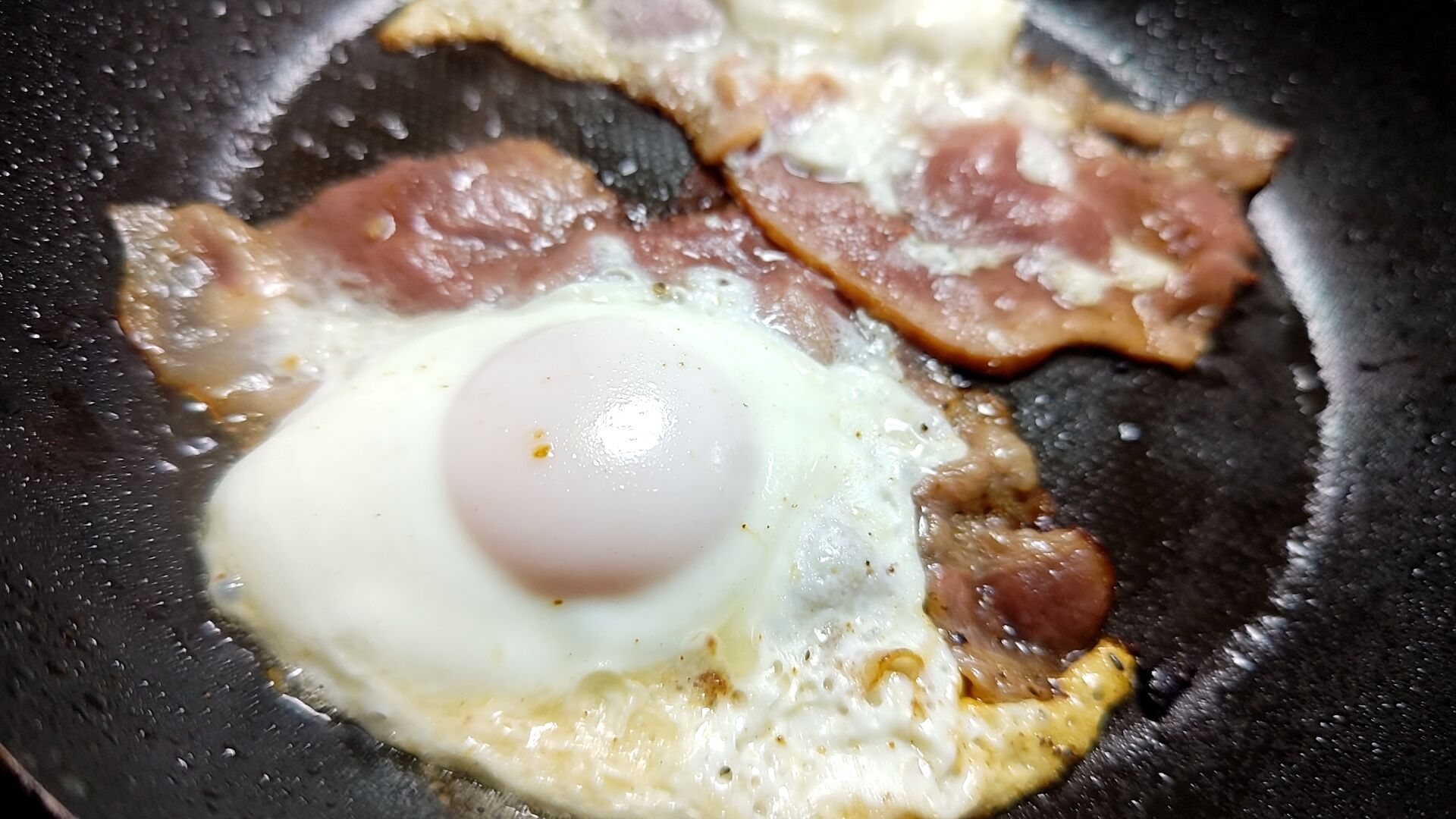 黄身も半熟、ベーコンもカリっとした部分のあるマーベラスな焼き上がり!