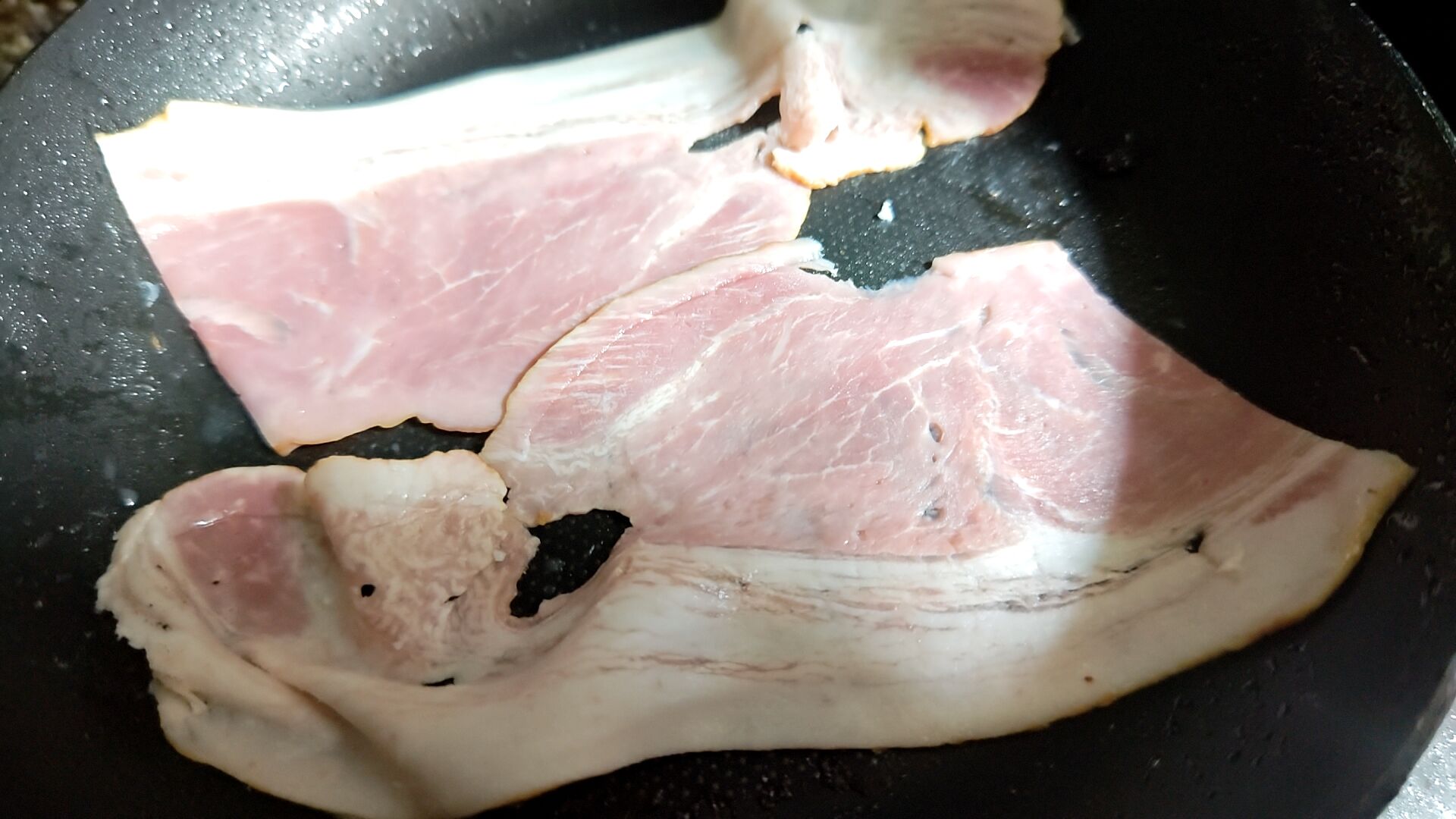 焼けてきた焼けてきた、しかしベーコンの香ばしさを引き立てるにはまだまだよ!
