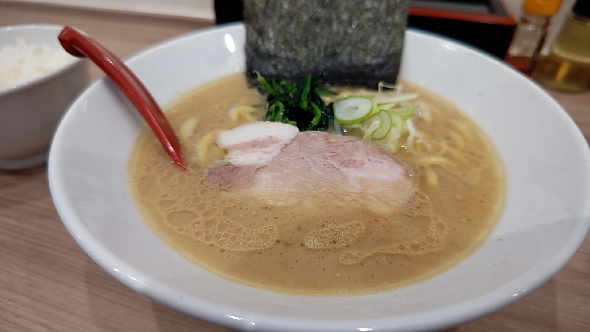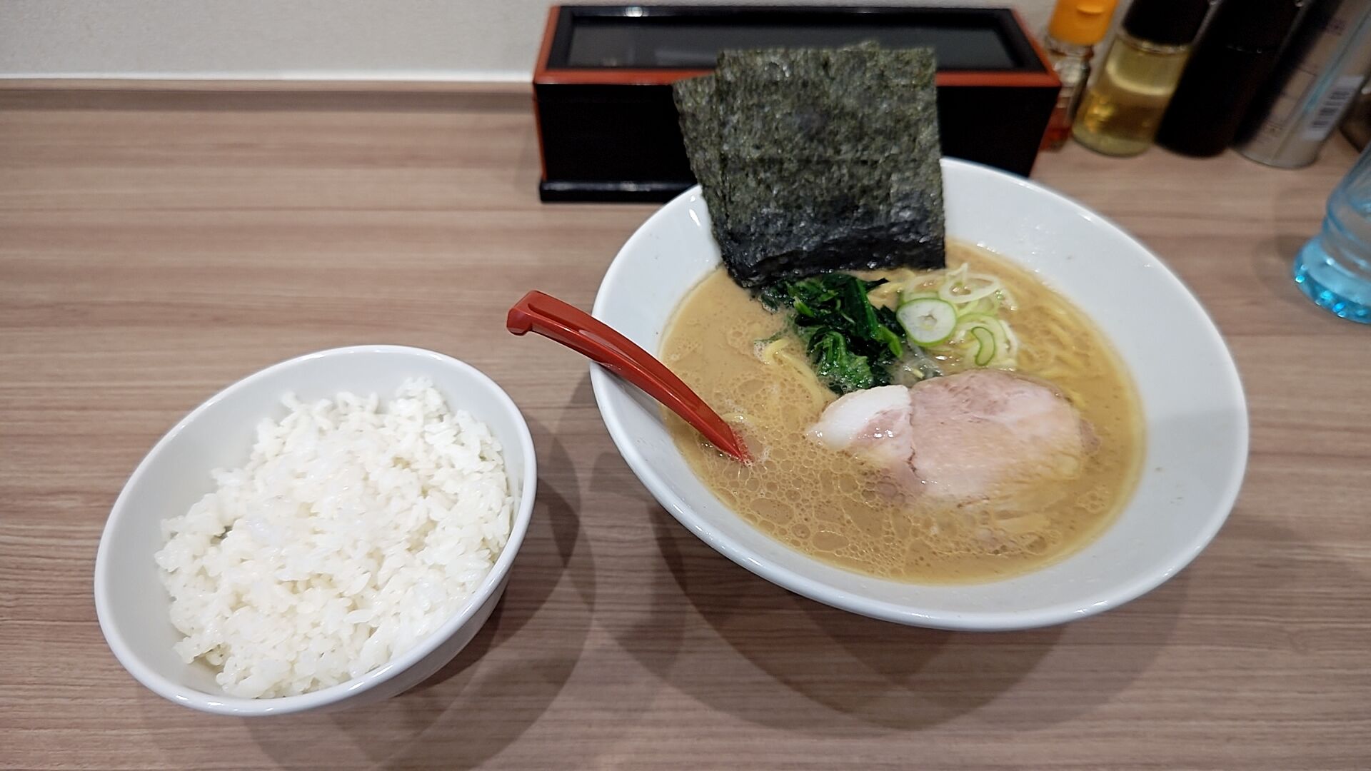 オーダーは 味濱家らーめんとライスセット!