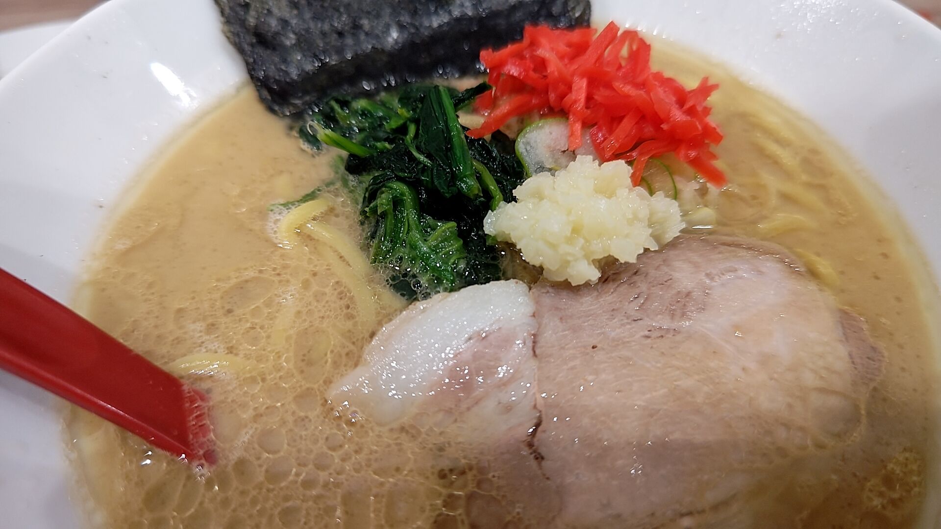 個人的に横浜家系 に欠かせないにんにくを乗せて