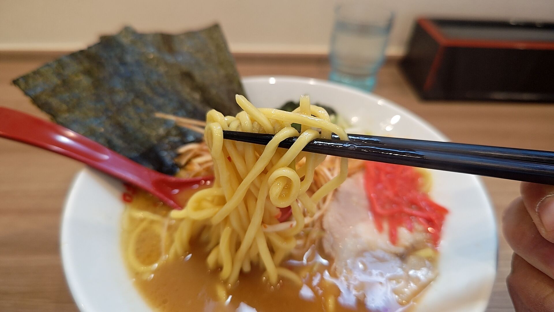 そしていつも通り濃い目オーダーの豚骨醤油スープをひとすすりしたら