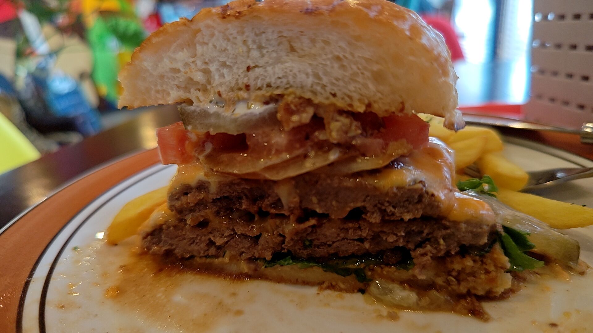 やや硬だけど牛肉の旨味と風味がギュッと詰まった美味しいハンバーグパティ。