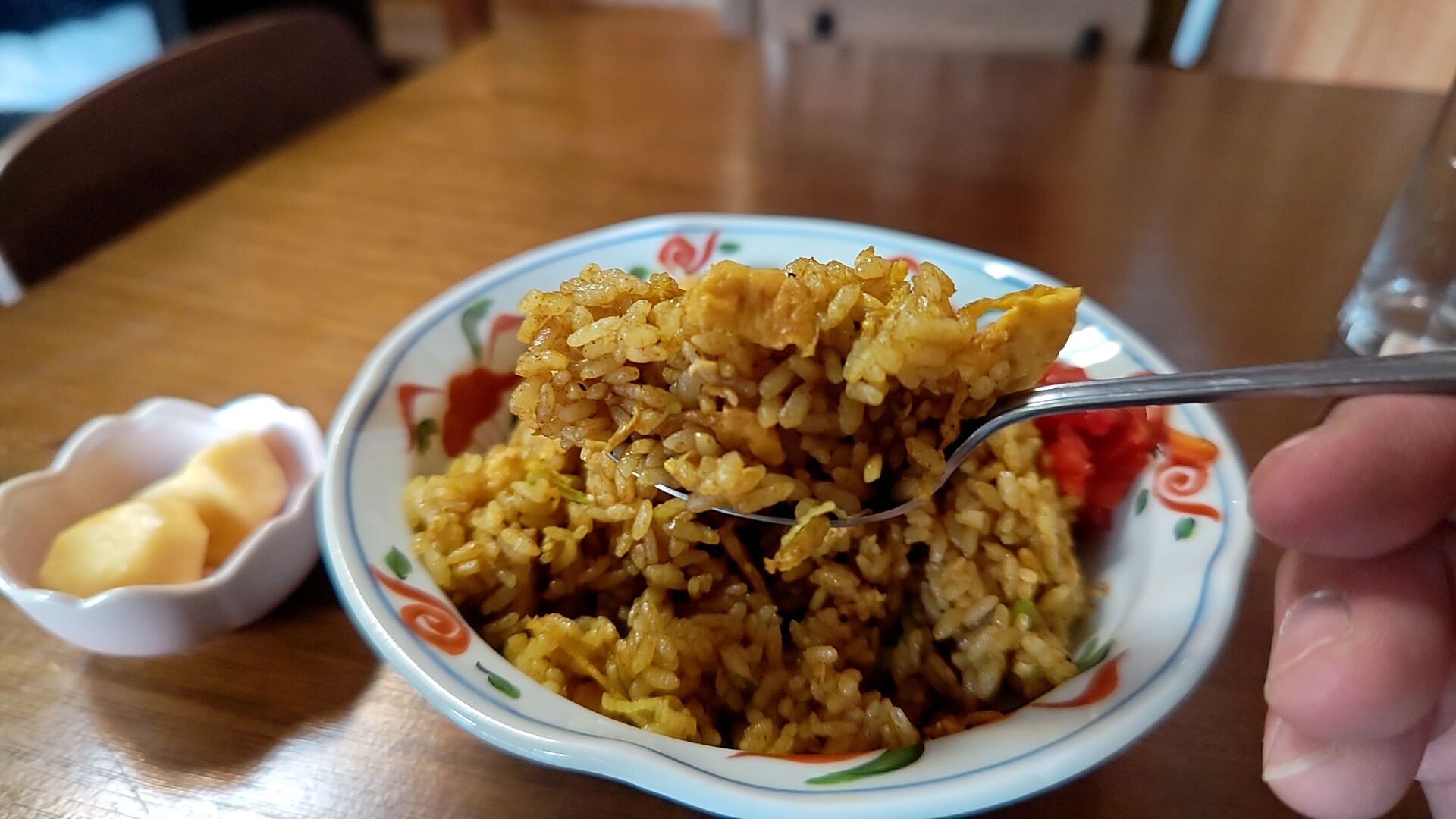 カレー粉が効いてて辛味も香りも食欲に響くわ。