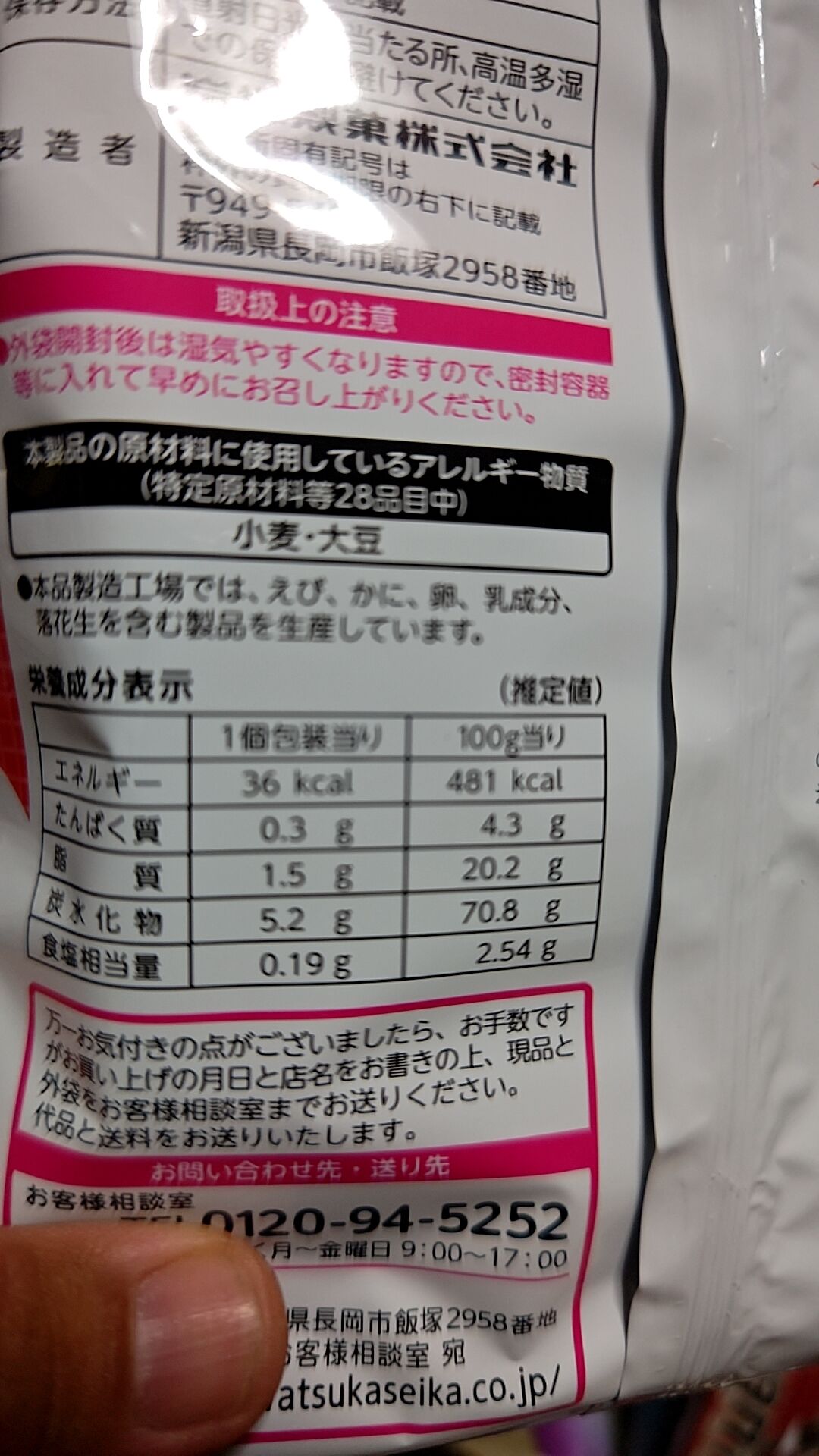 原材料やカロリーなんかはこんな感じ。