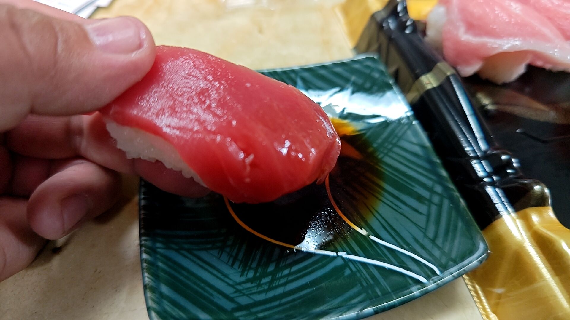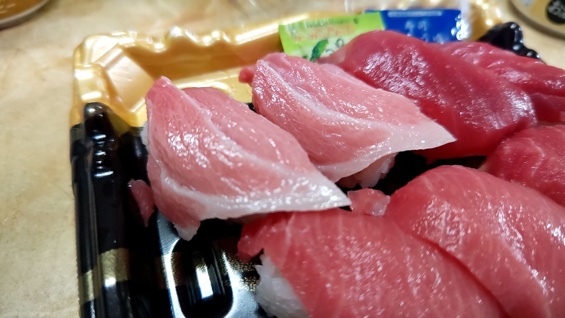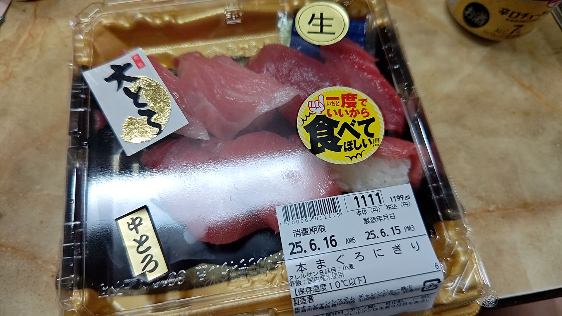 帰りに寄ったスーパーで超お得な生の本マグロ寿司に遭遇したという次第。