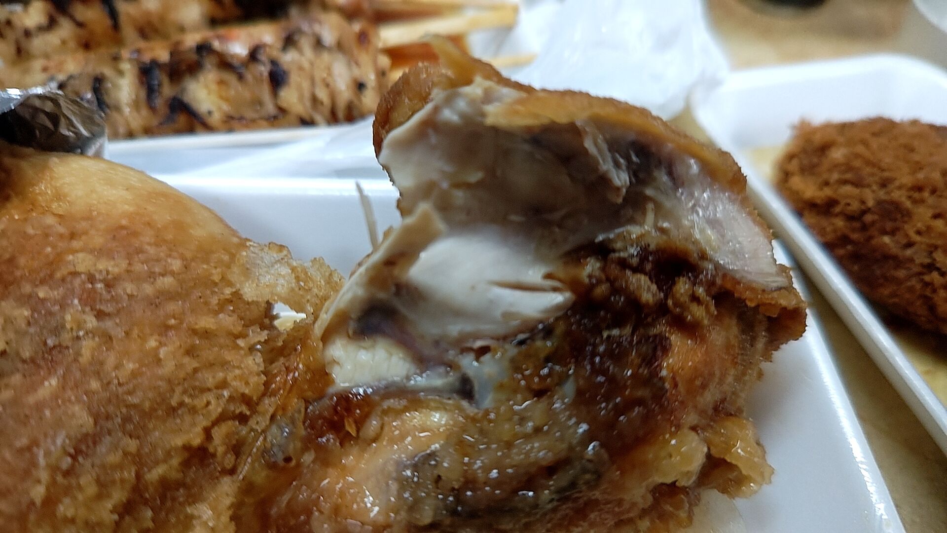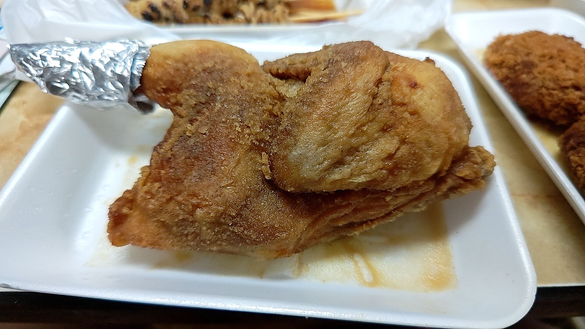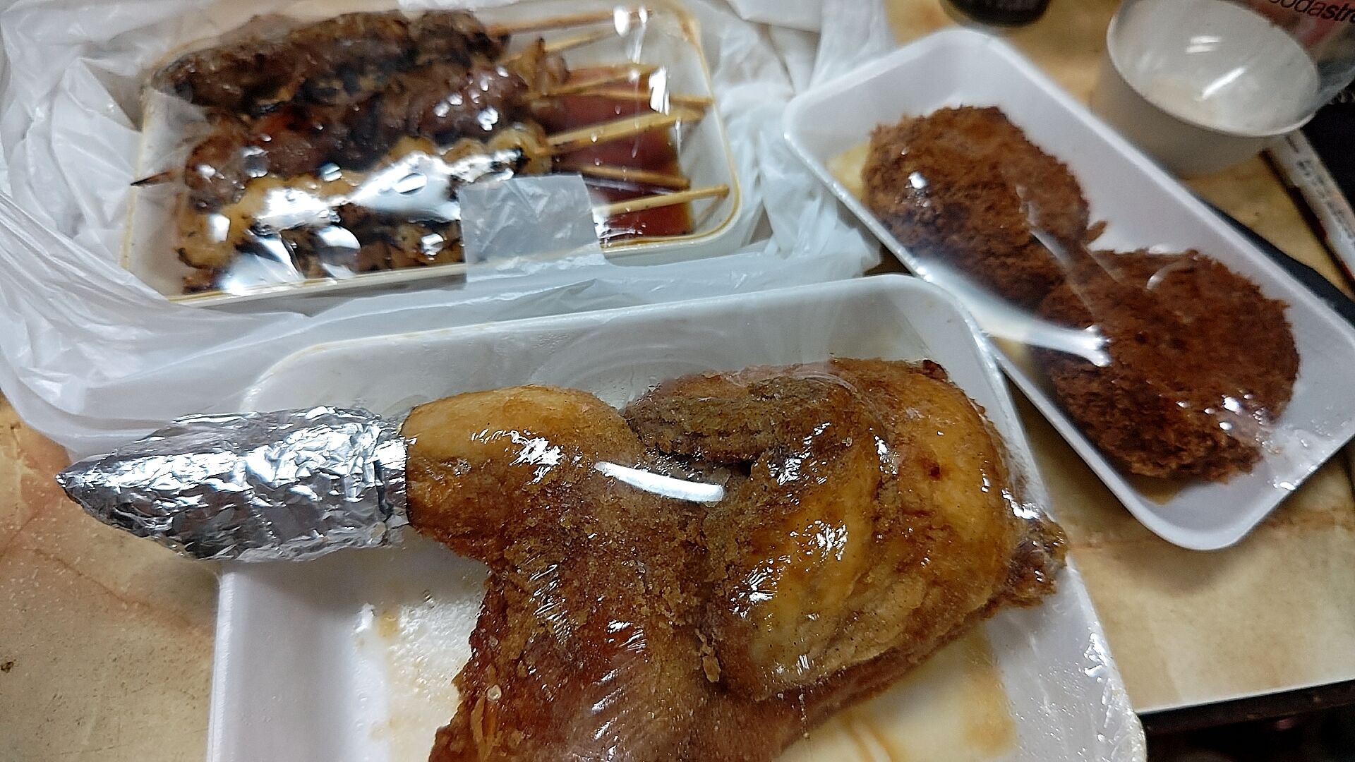 半身揚げは相変わらず持って帰っても温か、ジューシーでうまい!
