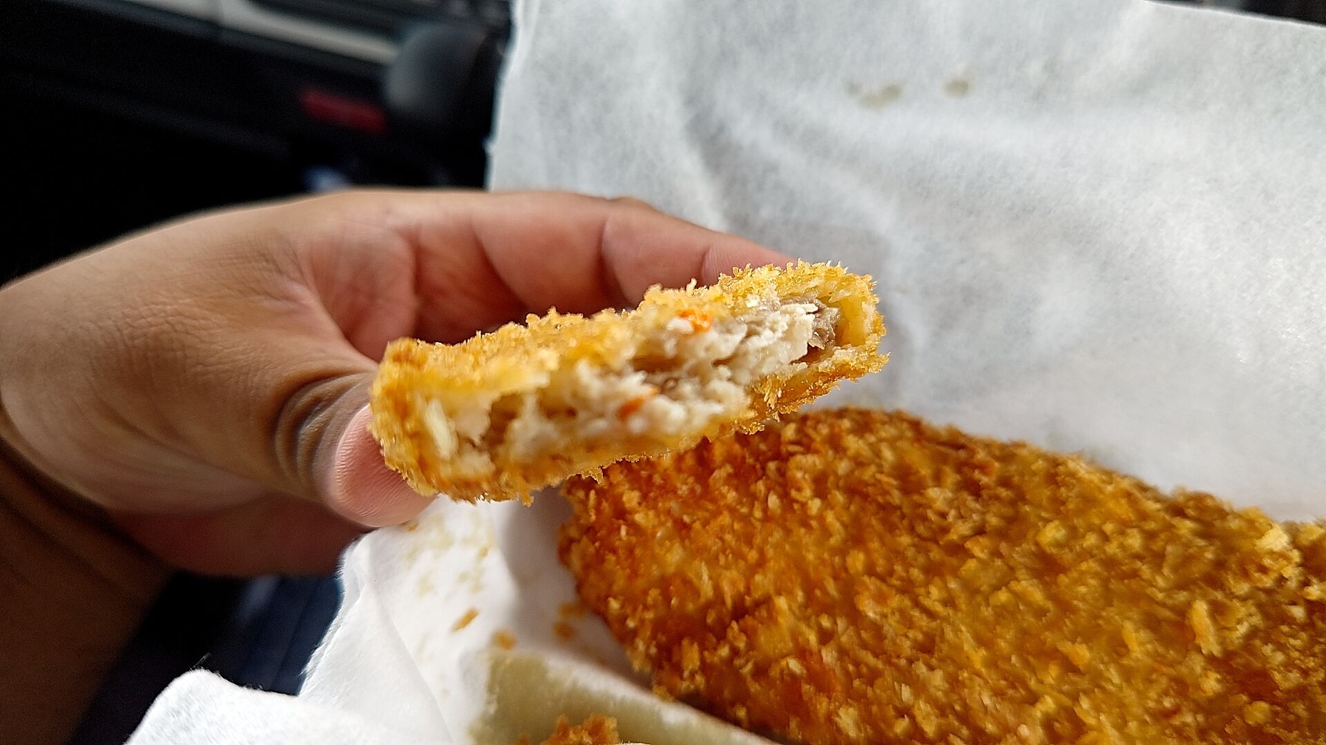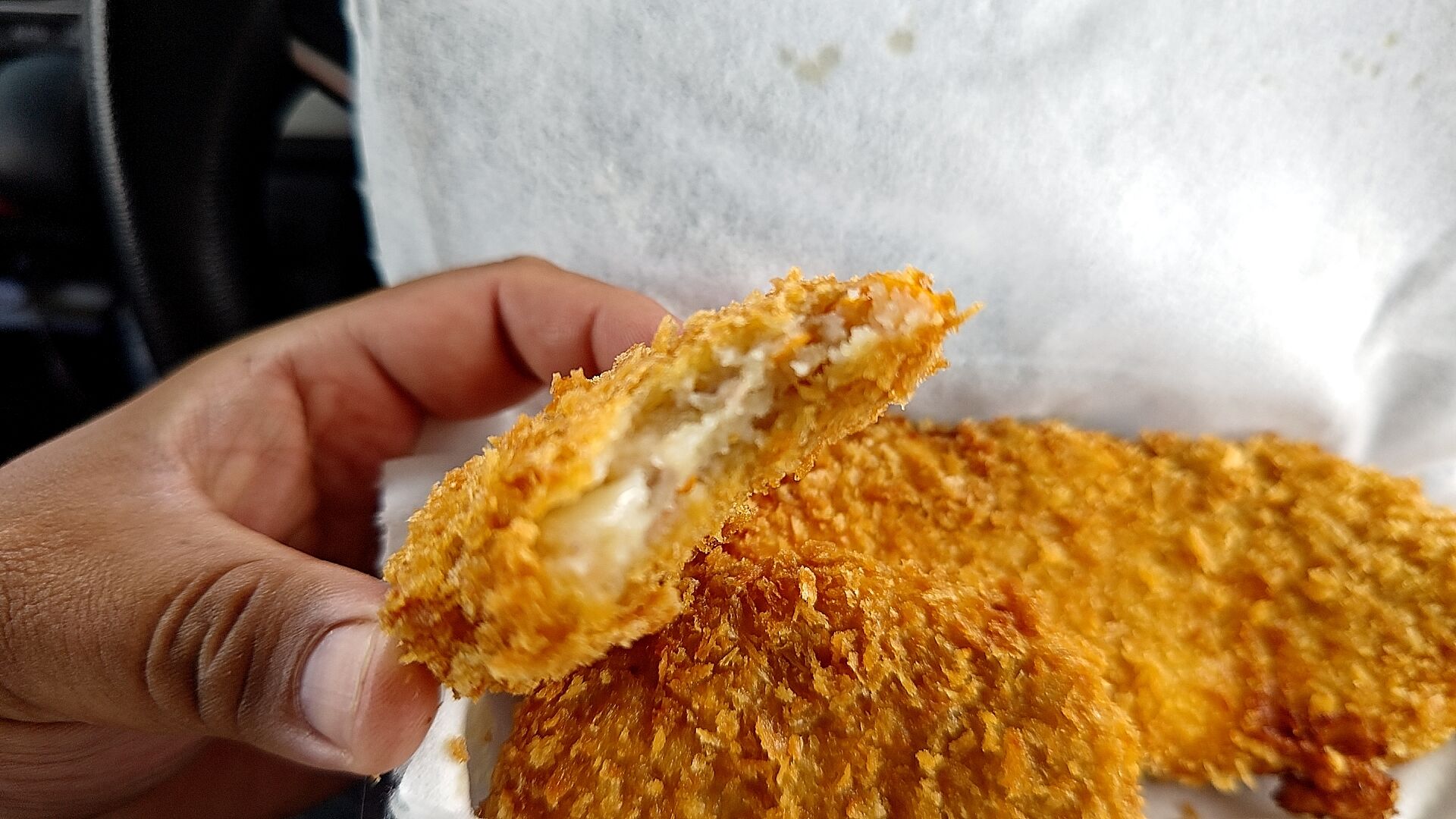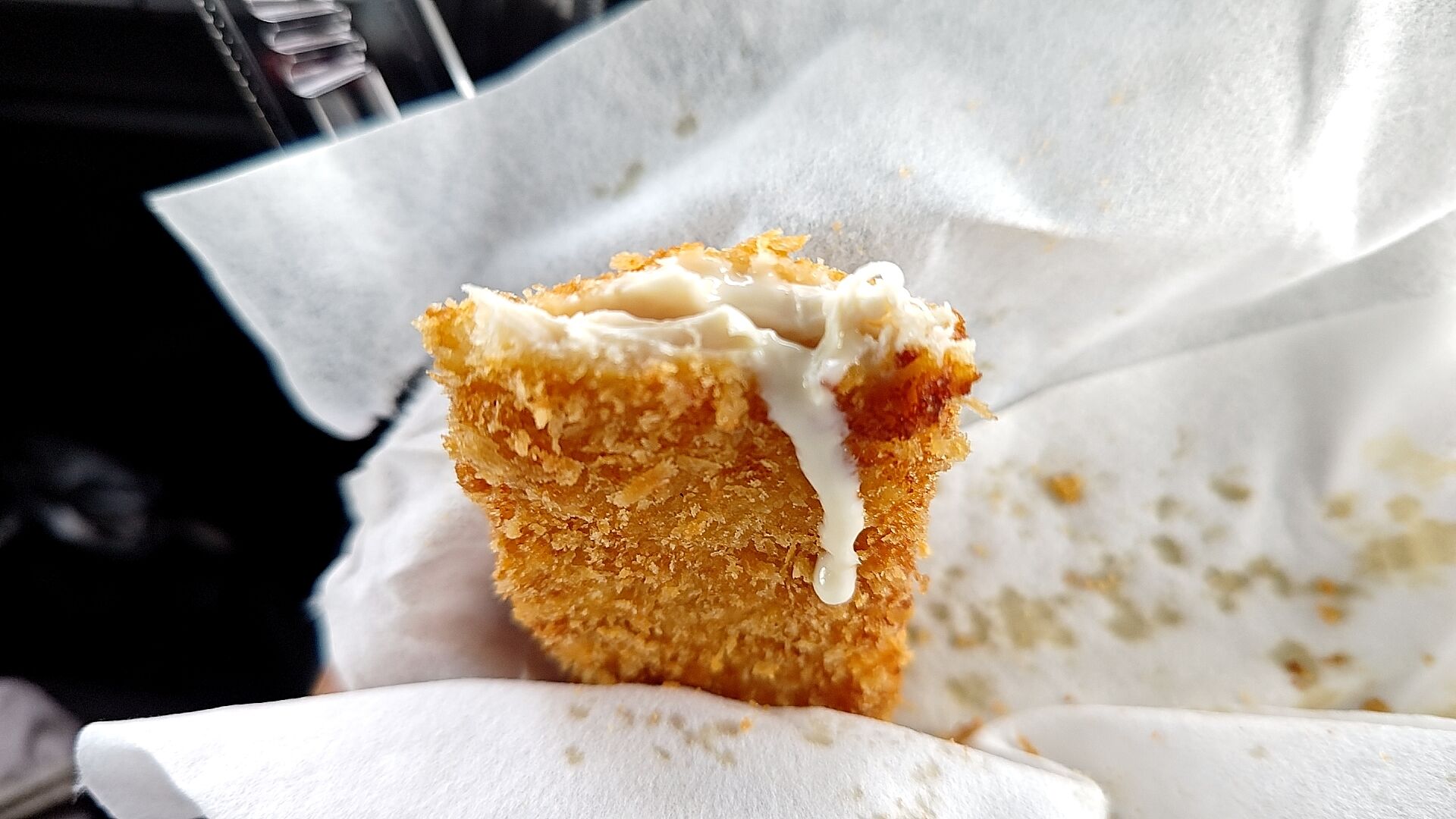 オーダーしたら揚げてくれる毎回揚げたてが食べられるスタイルなので、ちょっと寄って買い食いのし甲斐がある!