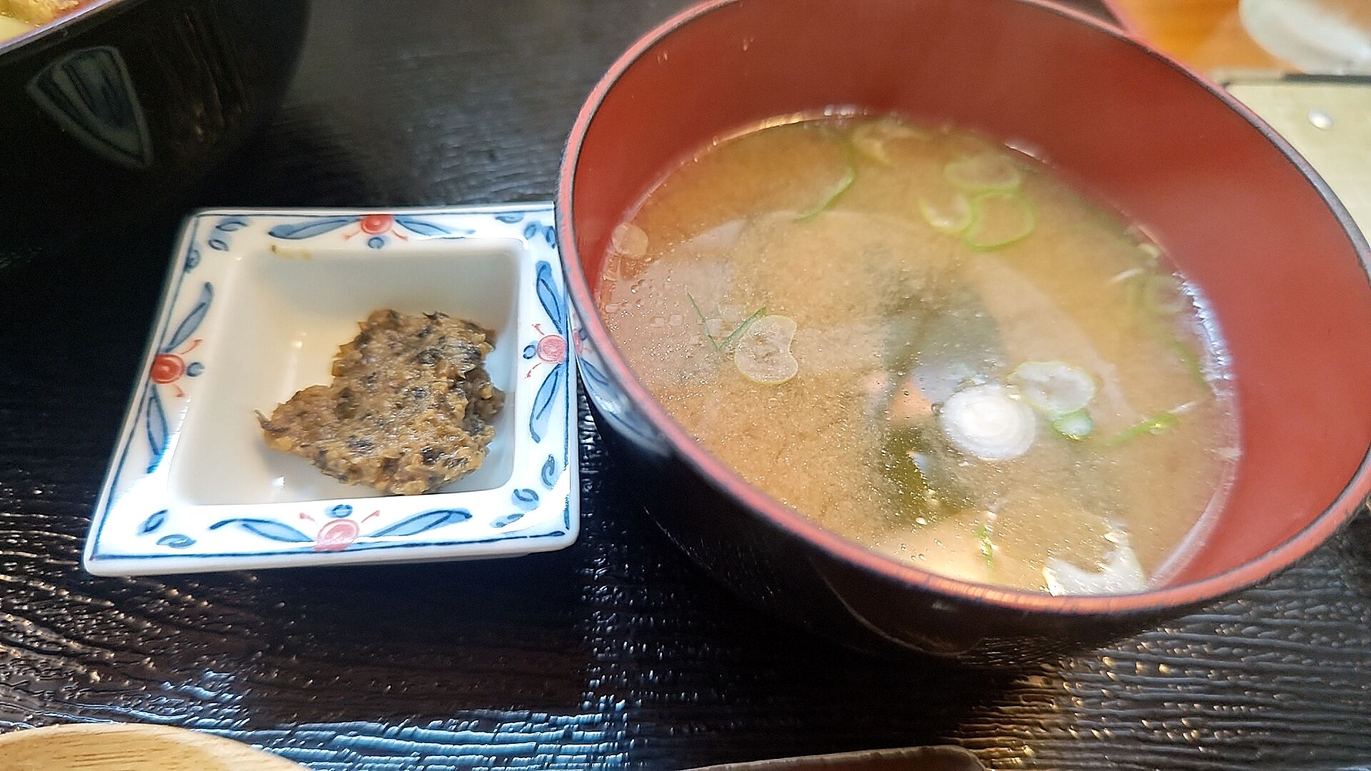 味噌汁と青唐辛子味噌?みたいな辛い味噌。
