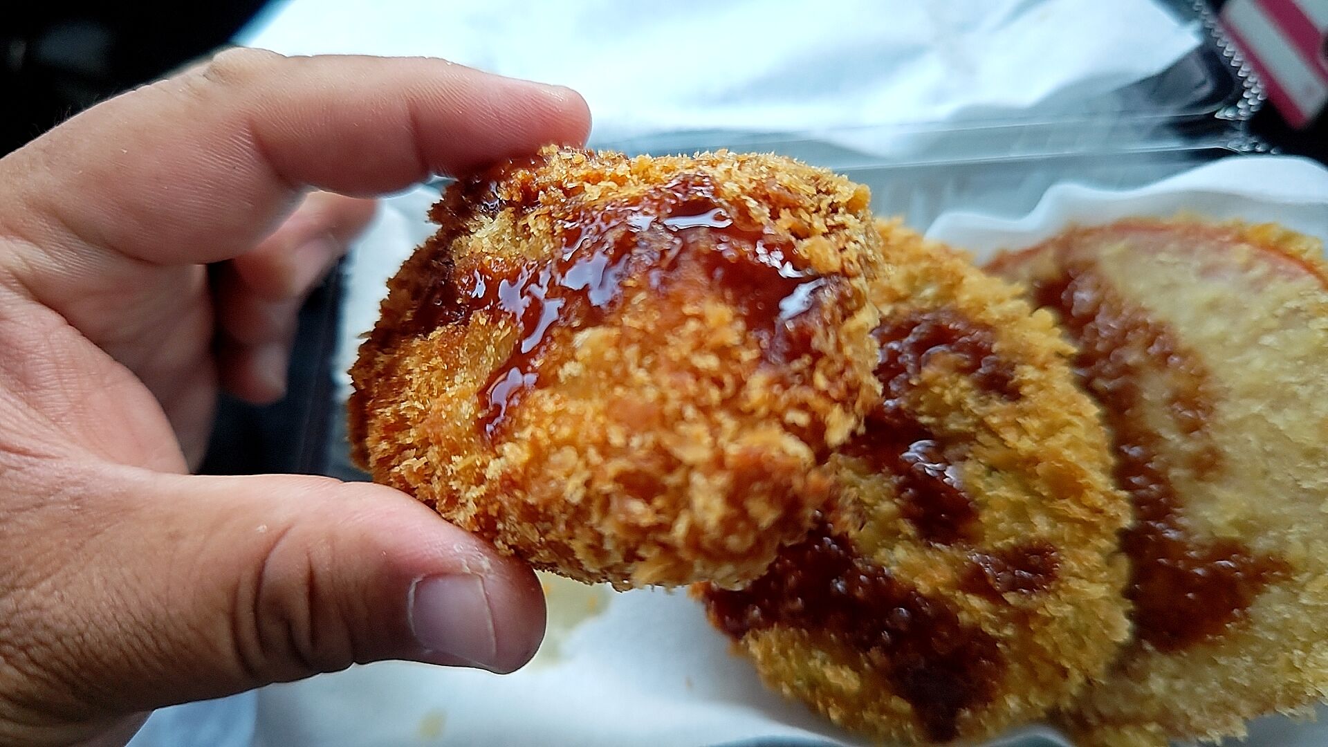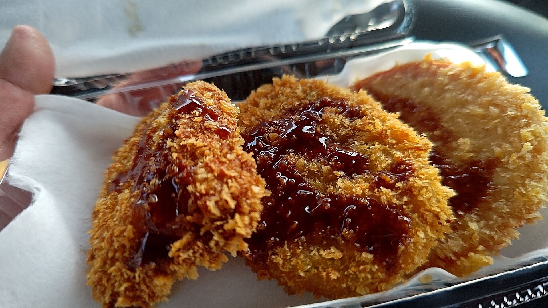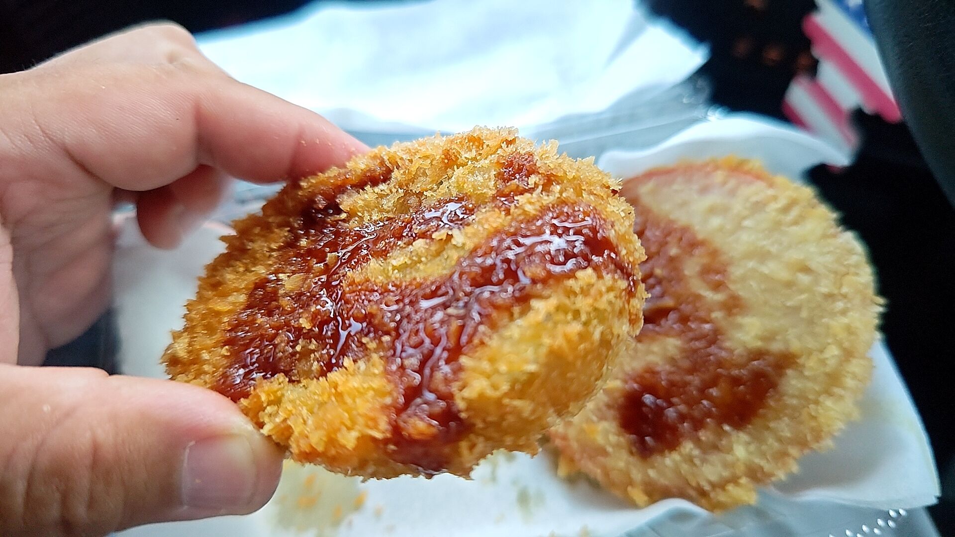 ハムカツも揚げたてアツアツはたまらんな〜。