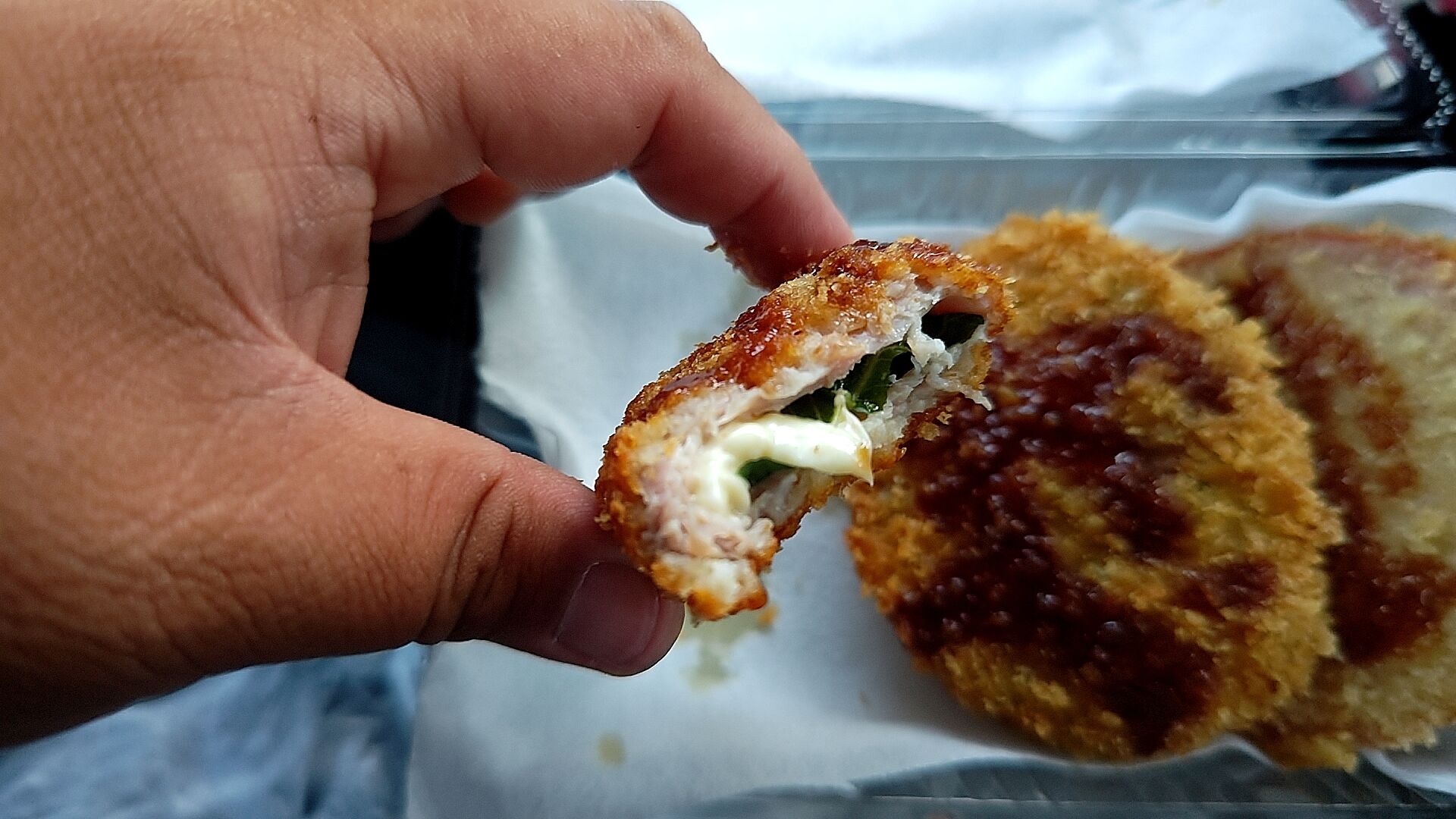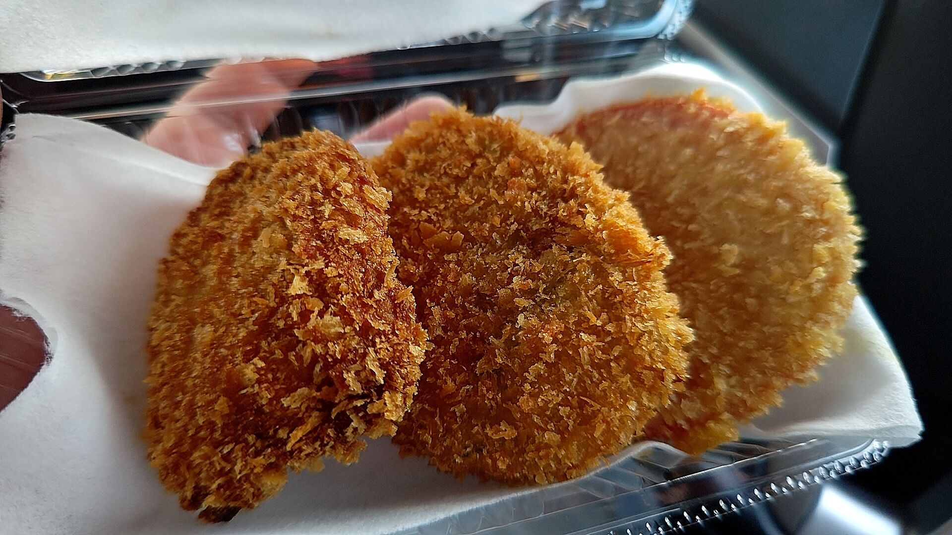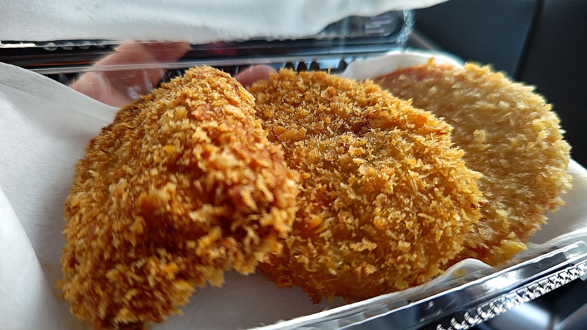 という訳で特売のハムカツ+チーズ肉まき+キャベツたっぷりメンチ