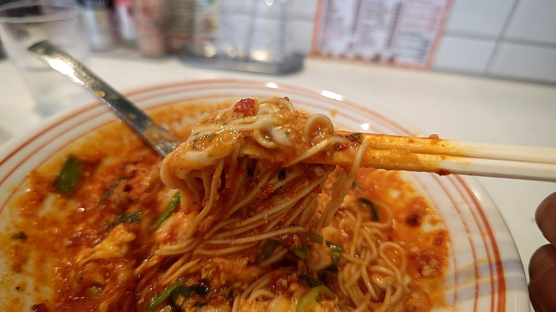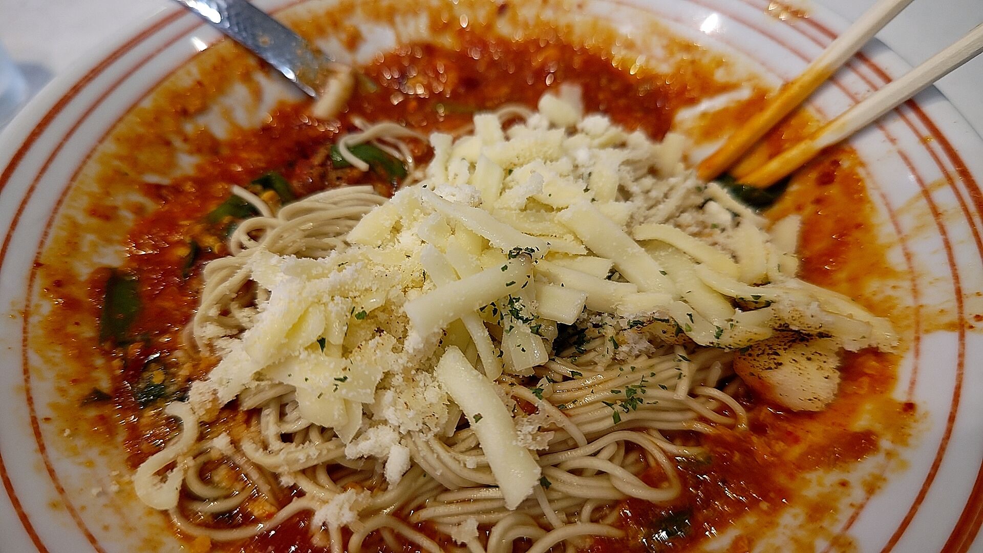 チーズの旨味と脂肪分のまろやかさが替え玉の細麺に絡んで、こりゃ旨いわ。