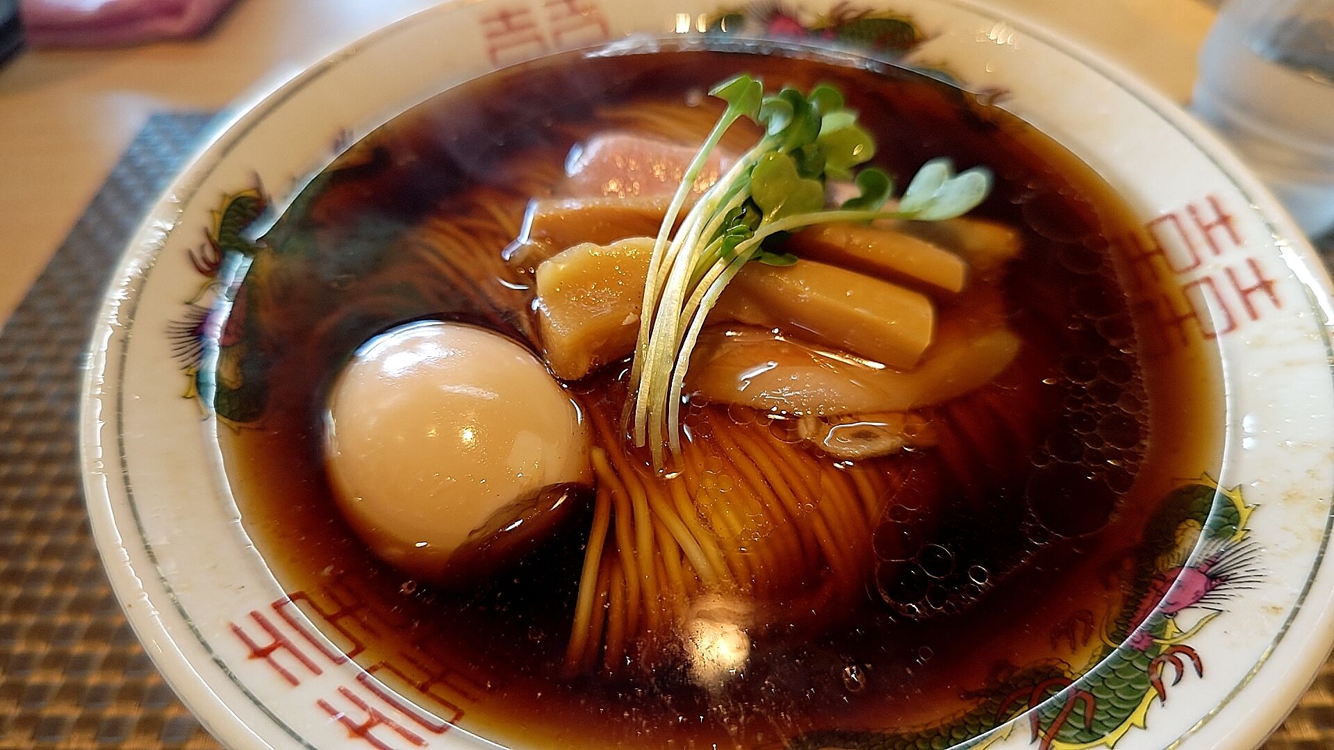 中華そばは醤油の深い色合いにコクと風味が良い感じ。
