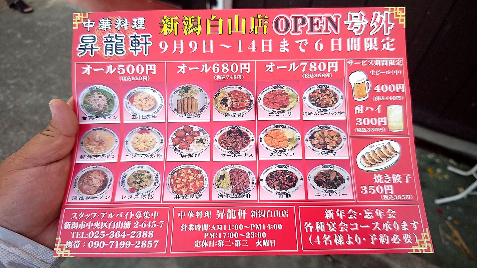 新潟市中央区、JR白山駅前に新しく中華料理屋さんがオープンとの事で行ってきました!