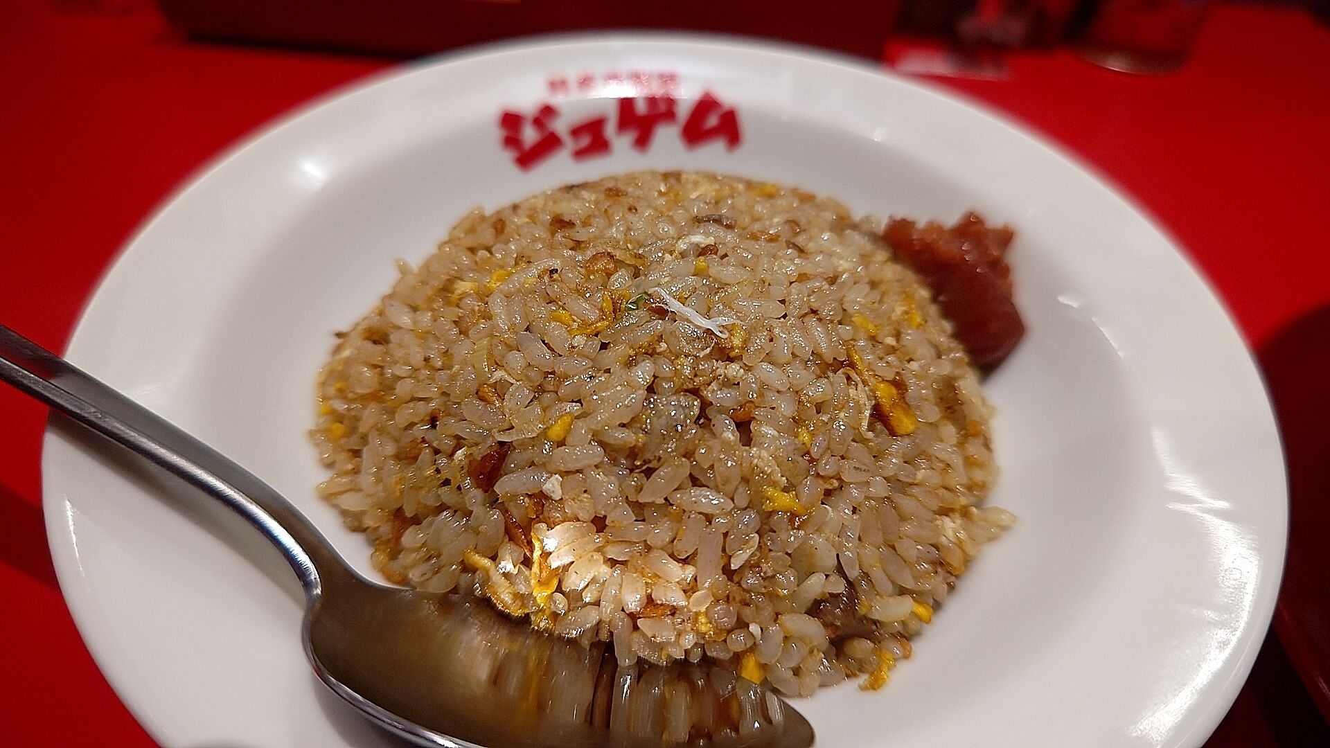 これがまた良いんだよなぁ、チャーハンの付け合わせには珍しい梅肉!