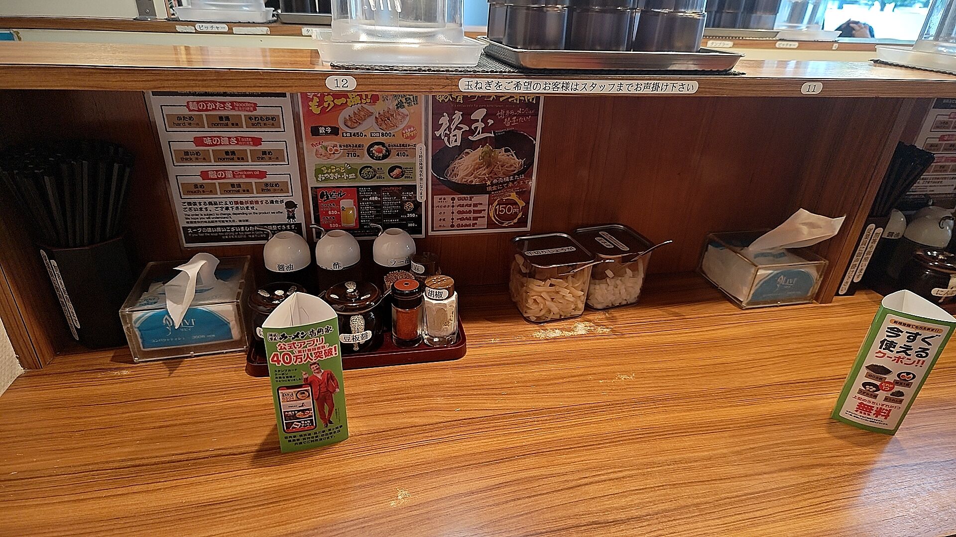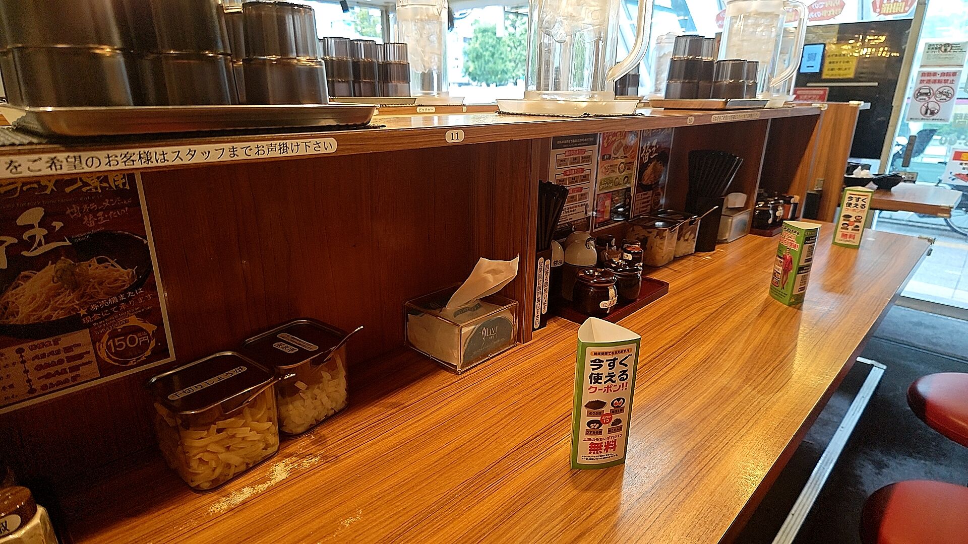 店内入ってすぐの券売機で家系ラーメン買ったら即カウンターに。