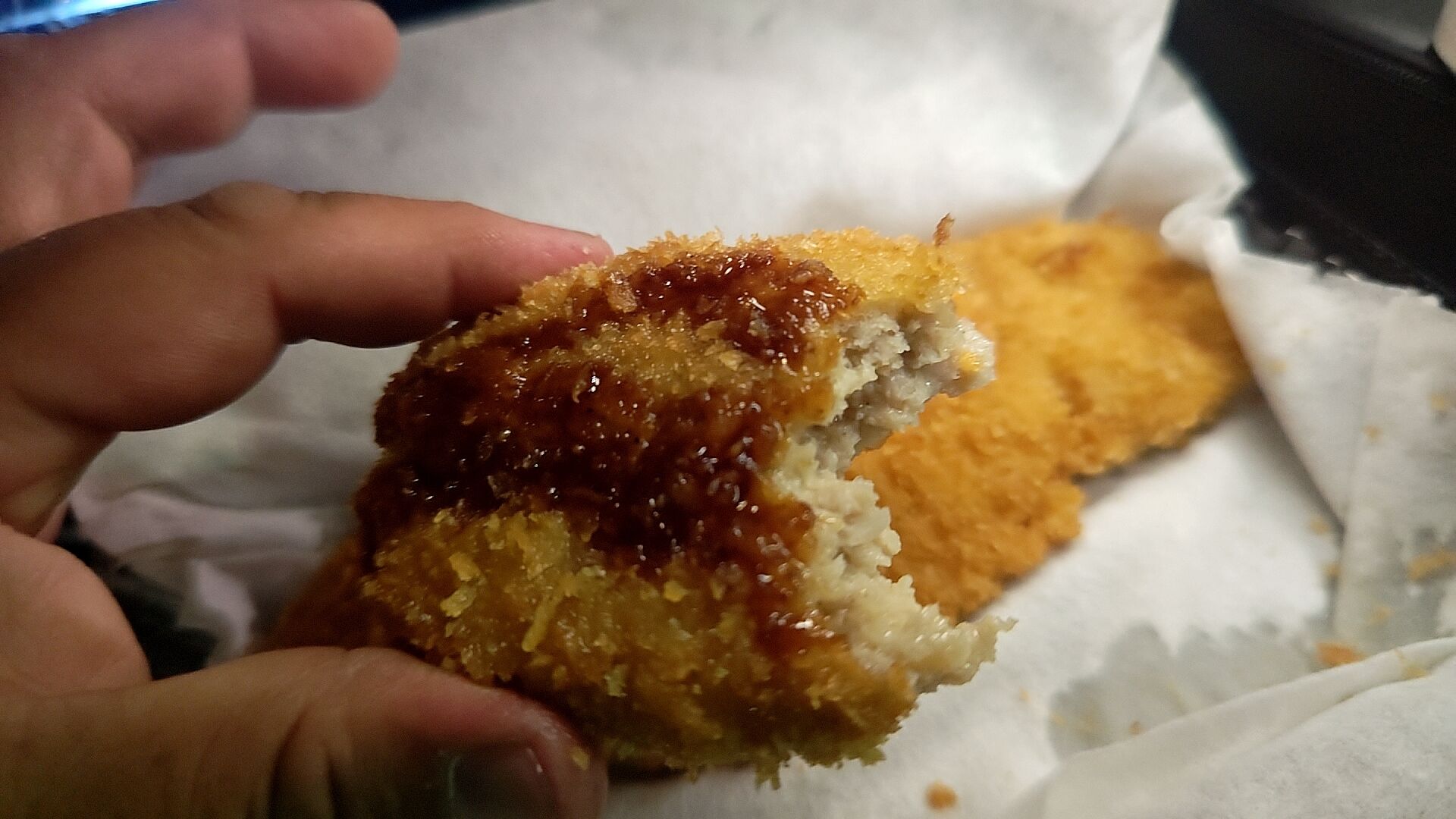 買い食いもたまらなく旨いが、これは家でとんかつなりカツ丼なり楽しみたいメニューでもあるな。