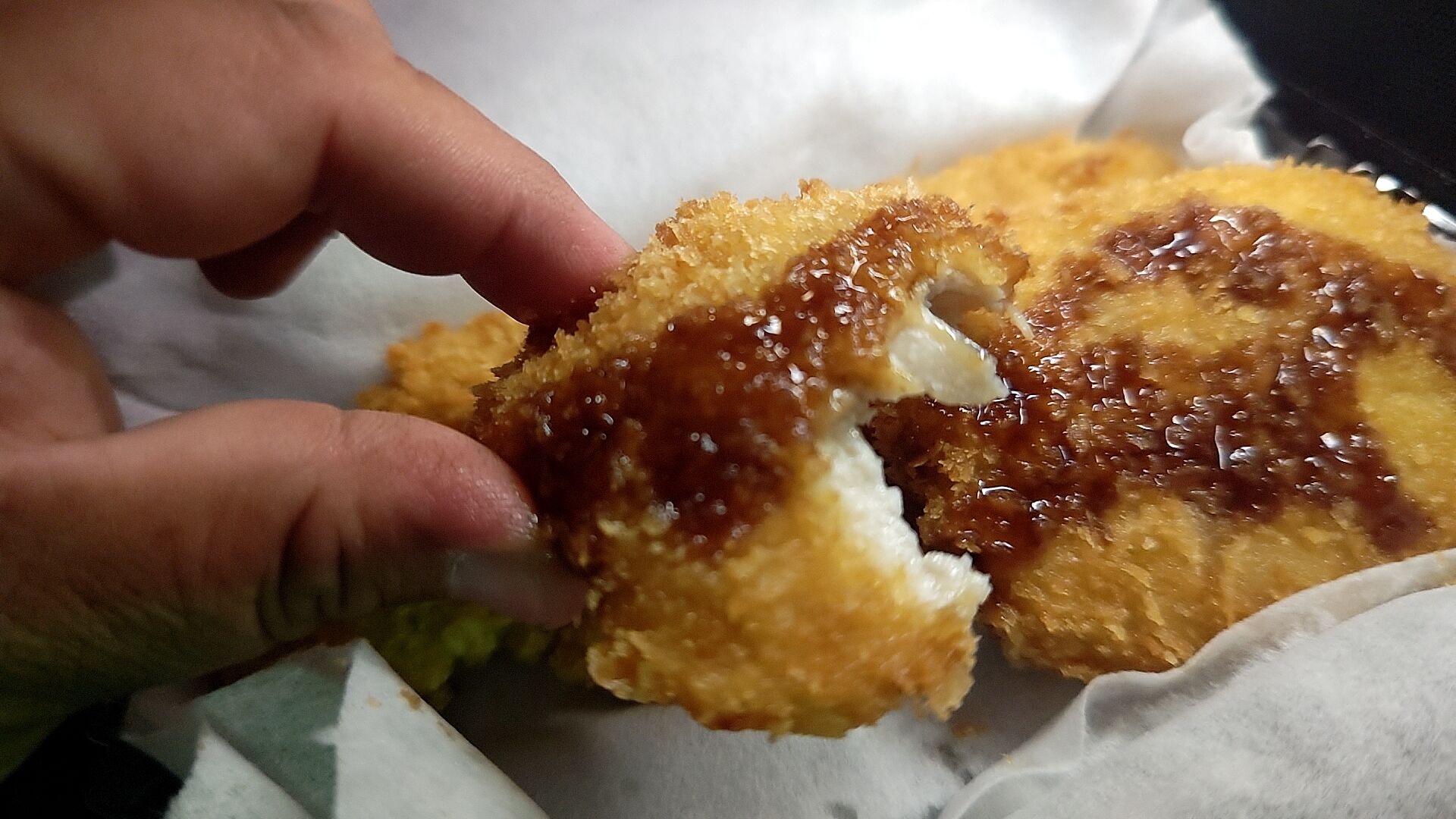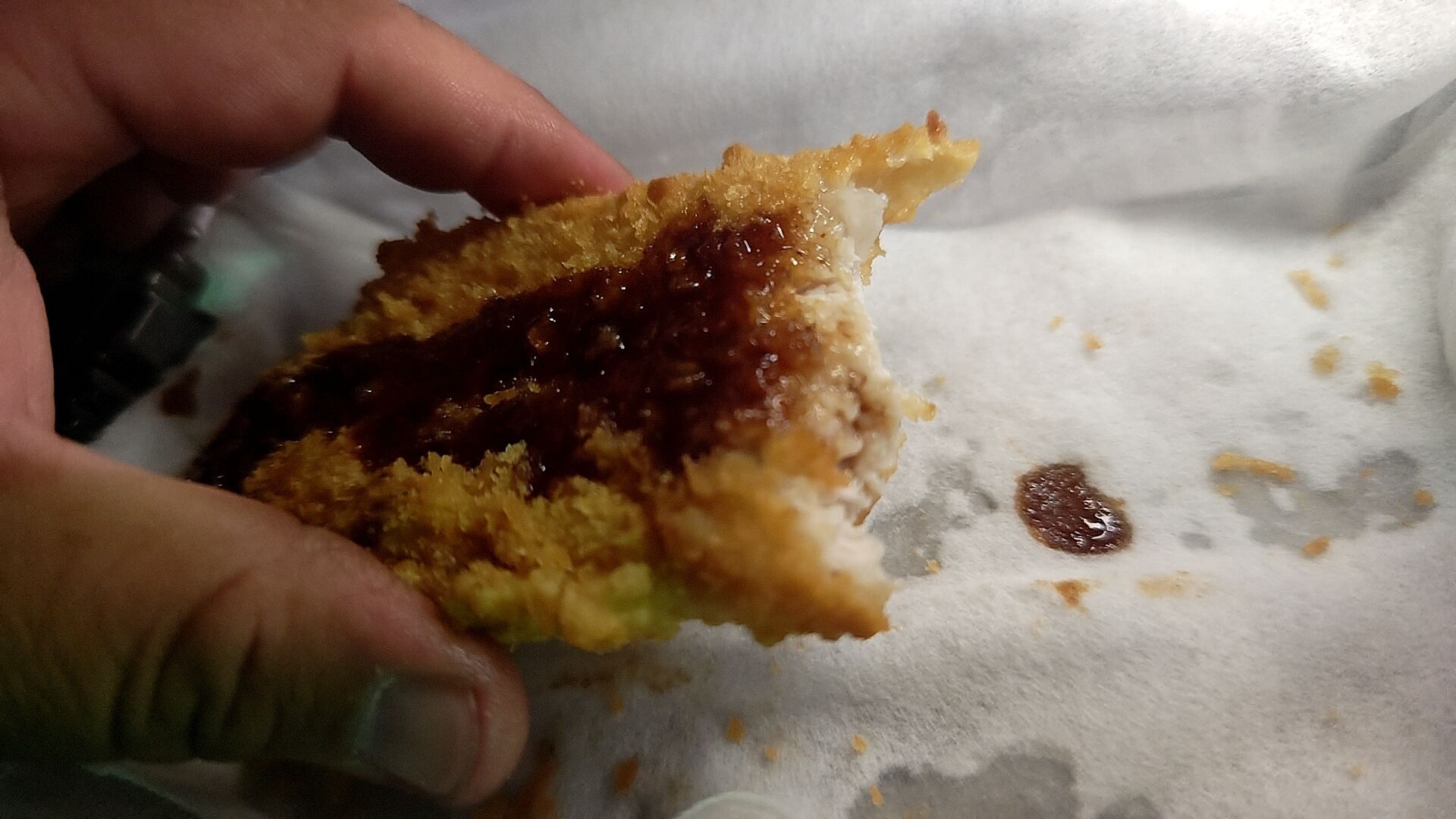 まずサイズもだけど、とんかつって普通やっぱカットされてるから、デカい1枚肉にかぶりつくのはどうなの!?と