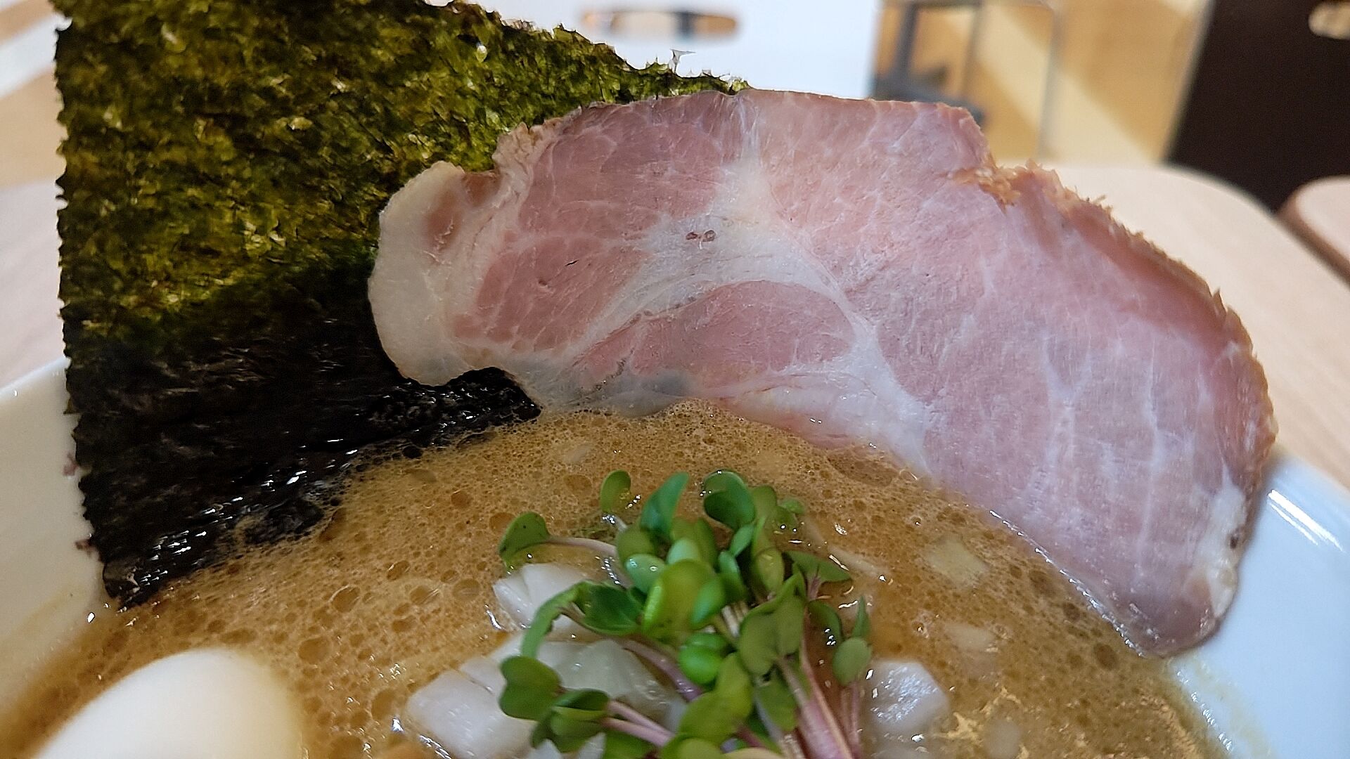 味噌スープの茶色にでかいレアチャーシューが良いね