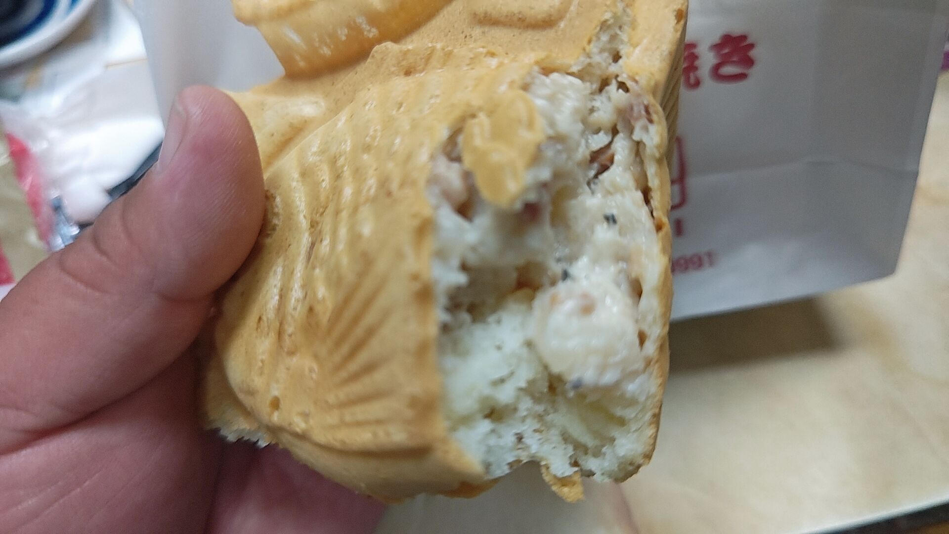 じゃがいもにマヨネーズ、ベーコン、ブラックペッパーのしょっぱい鯛焼きだが
