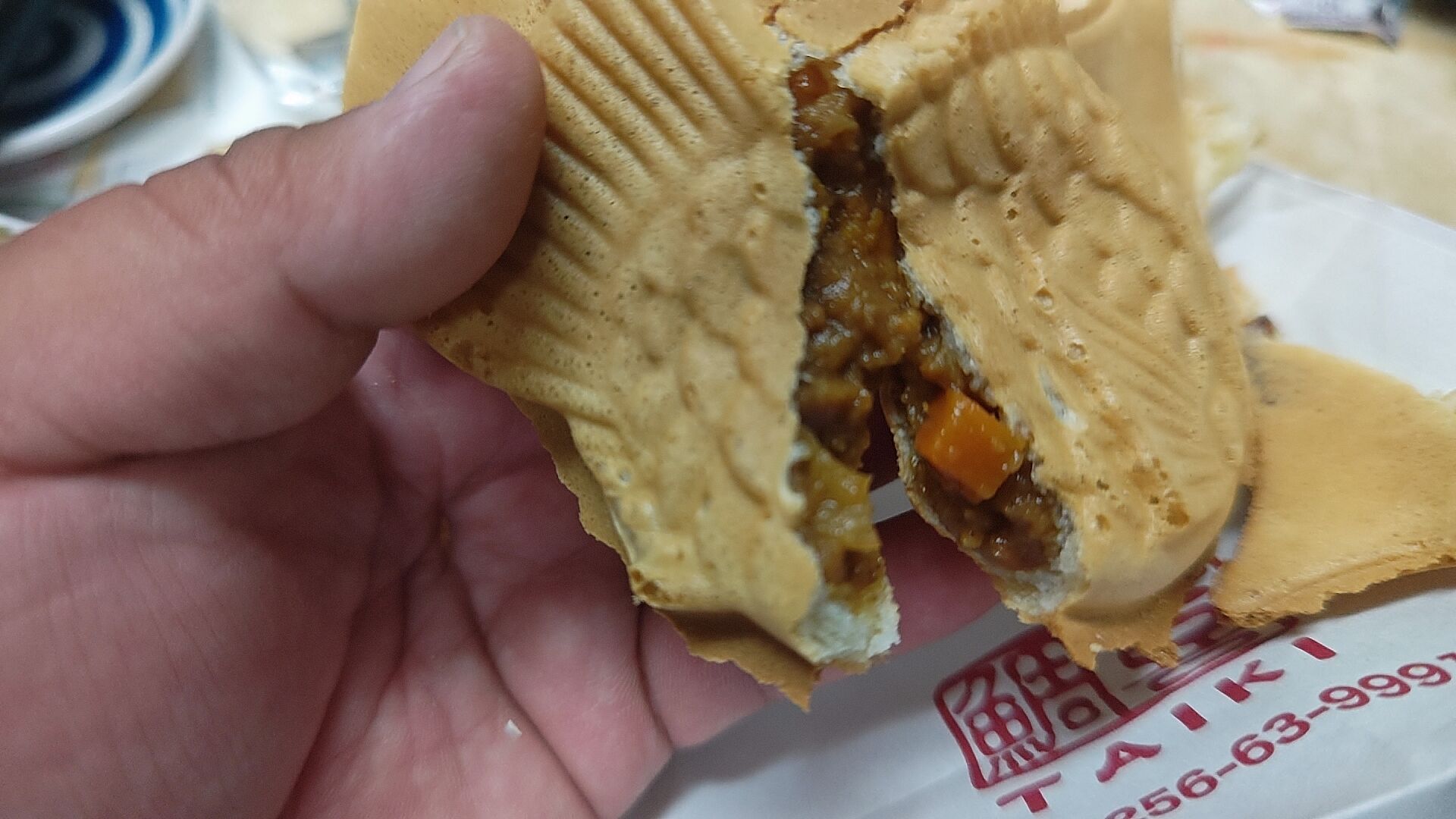 おお!?鯛焼き鯛喜さんのカレー鯛焼きこんなに辛味とスパイシーさの効いたパンチのある味だったっけ?