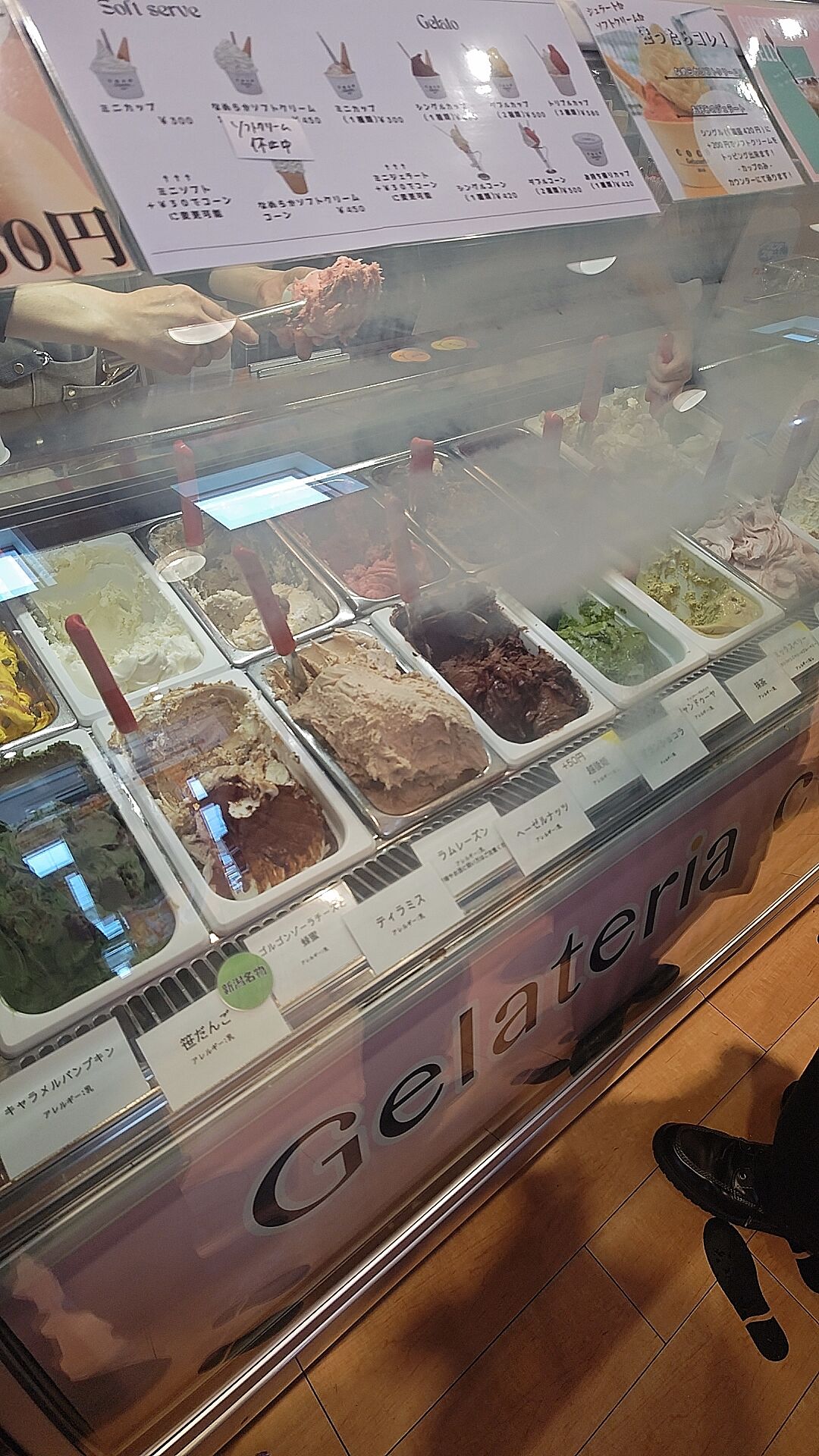 イートインスペースがあるので、そこで食べるかと座るが右を見ても左を見ても前を見ても皆ジェラート食べとる。