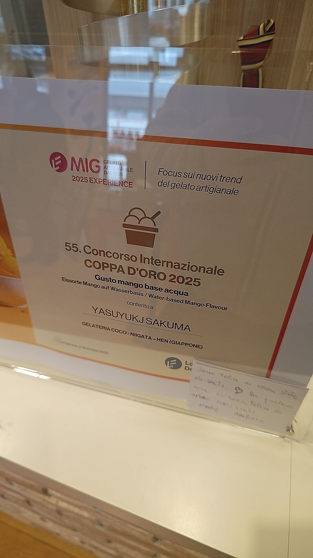 新潟県三条市からイタリアで世界的なジェラートの国際大会「コッパ・ディ・オーロ(Coppa d'Oro)」で優勝したオーナーのお店!!