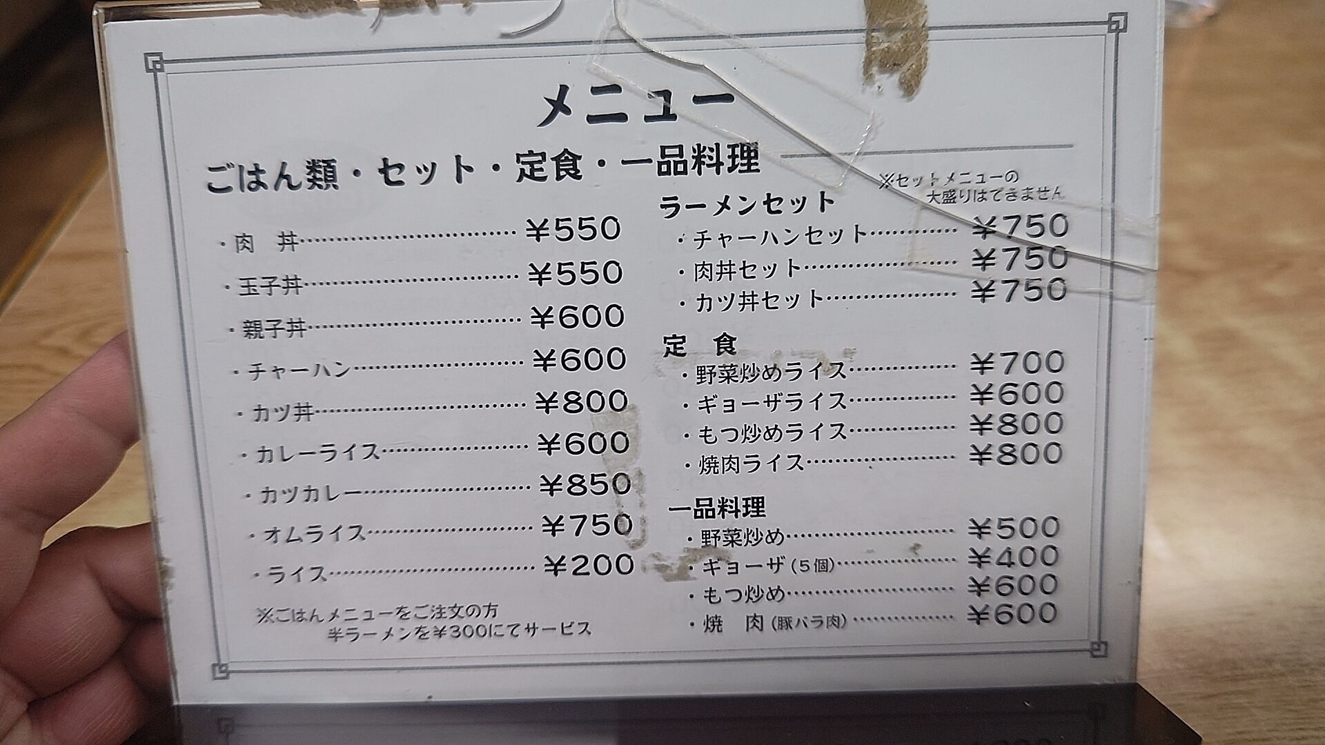 まぁ噂によると昼間来ると奥さんと喧嘩してるとか聞いた事あるんだけど、自分は夕方のオッチャンワンオペしか知らない。