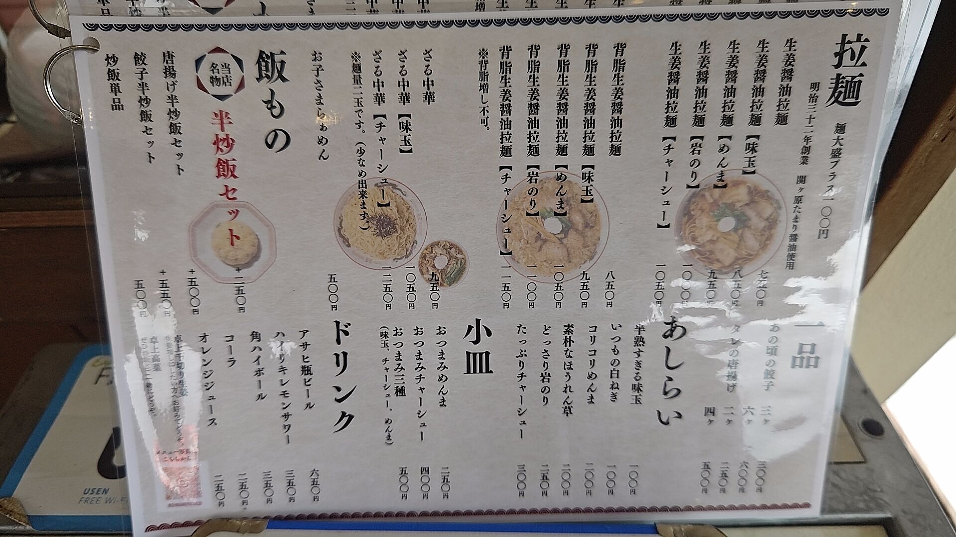 拉麺の主軸は生姜醤油拉麺で750円というのが目に入ってきて、バリエーションに背脂生姜醤油とざる中華。