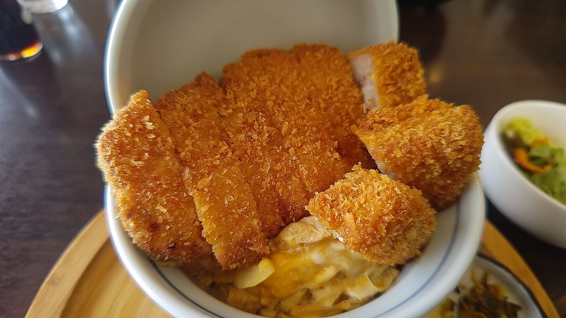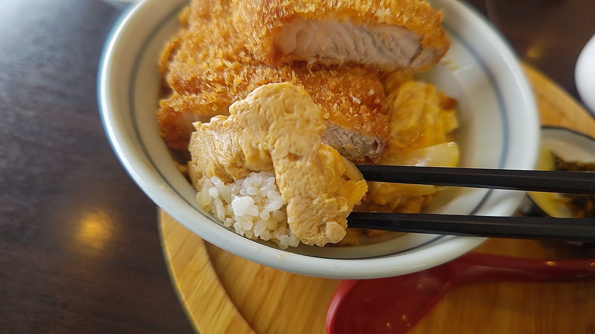 卵にも切ったとんかつから純白のビアンカの美味しい脂の肉汁がかかってて美味しい。