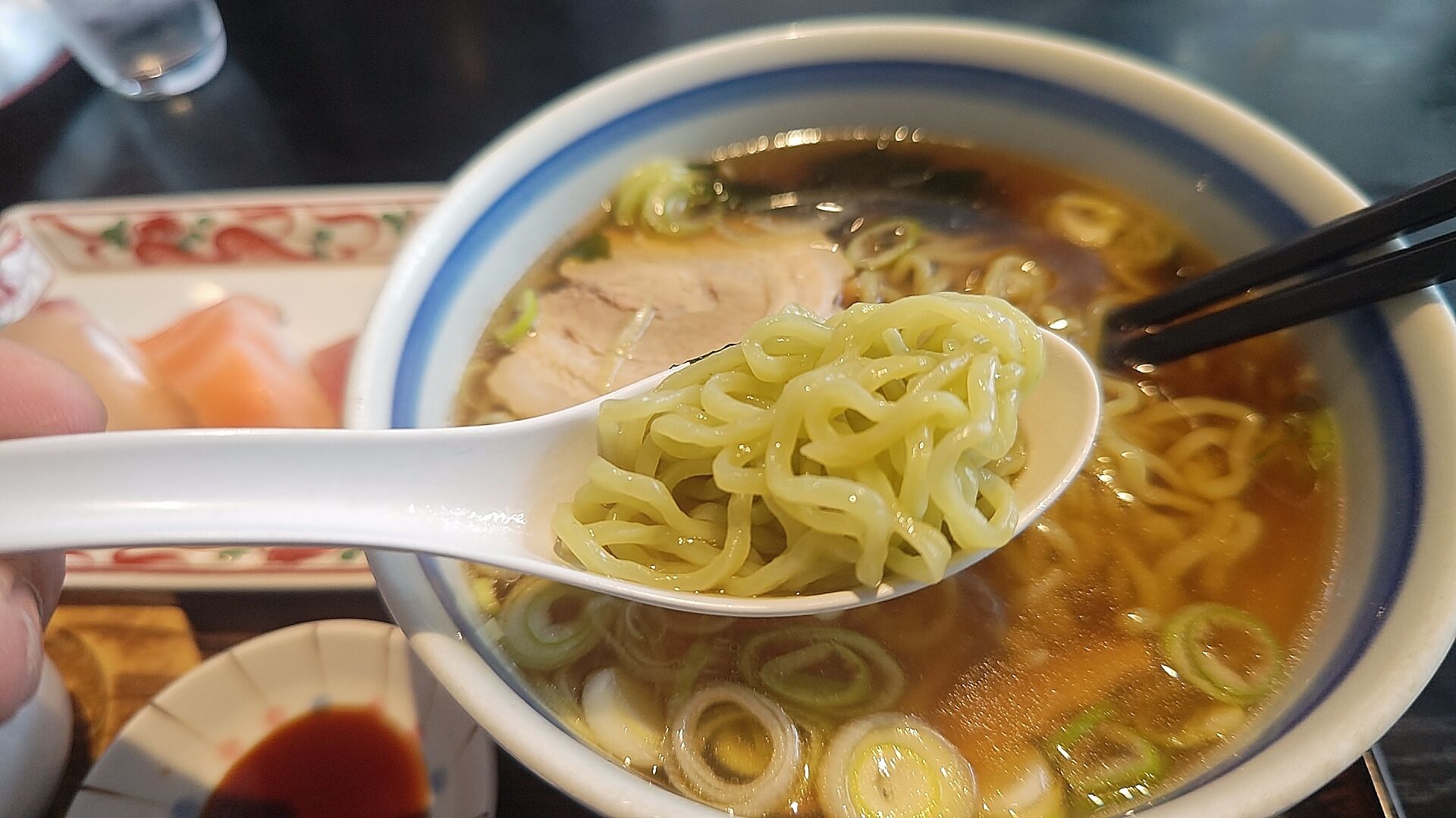 ラーメンはシンプルながらダシの味わいであっさりスープ。