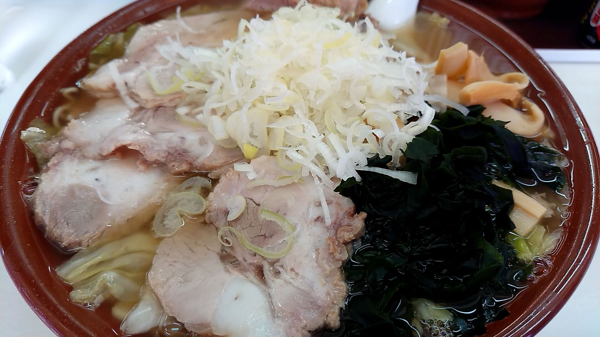 たっぷりのネギ・ワカメ・野菜とちゃーしゅう。
