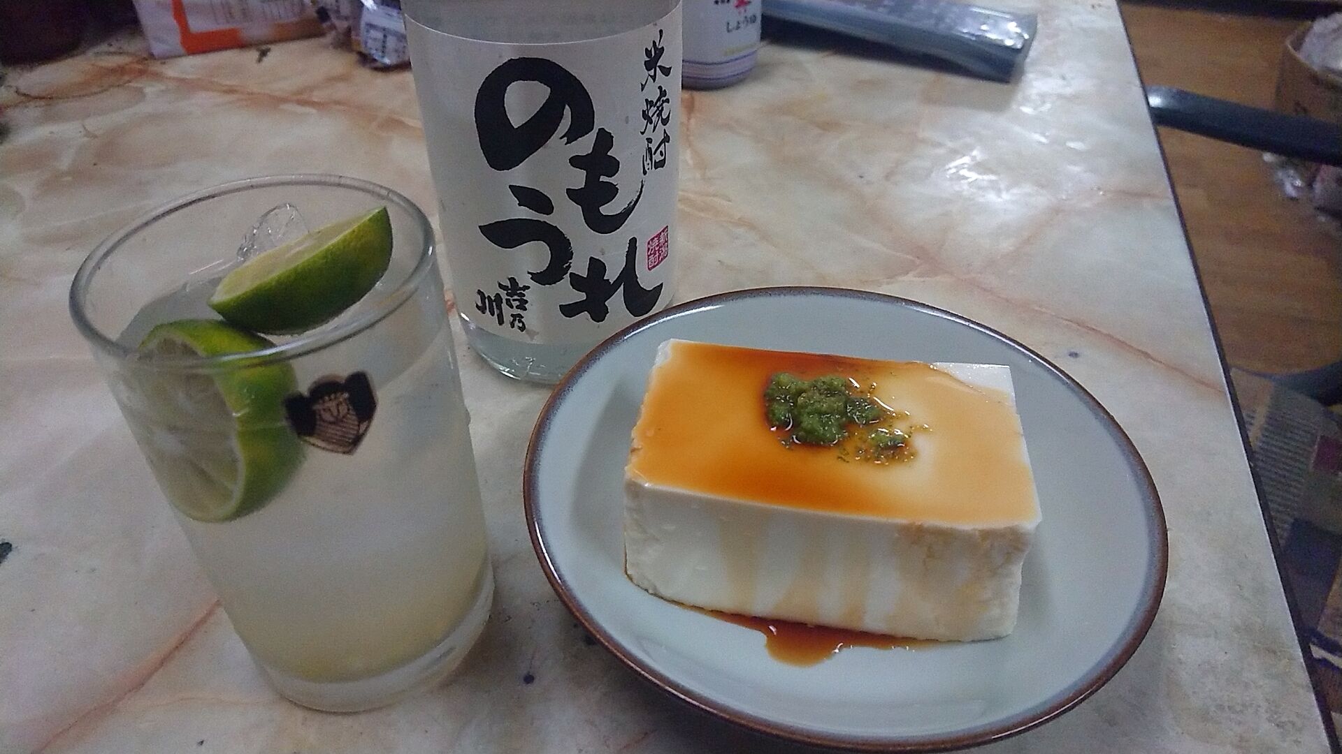 焼酎のスダチ割り&スダチの皮をすりおろした物を乗せた冷奴です。