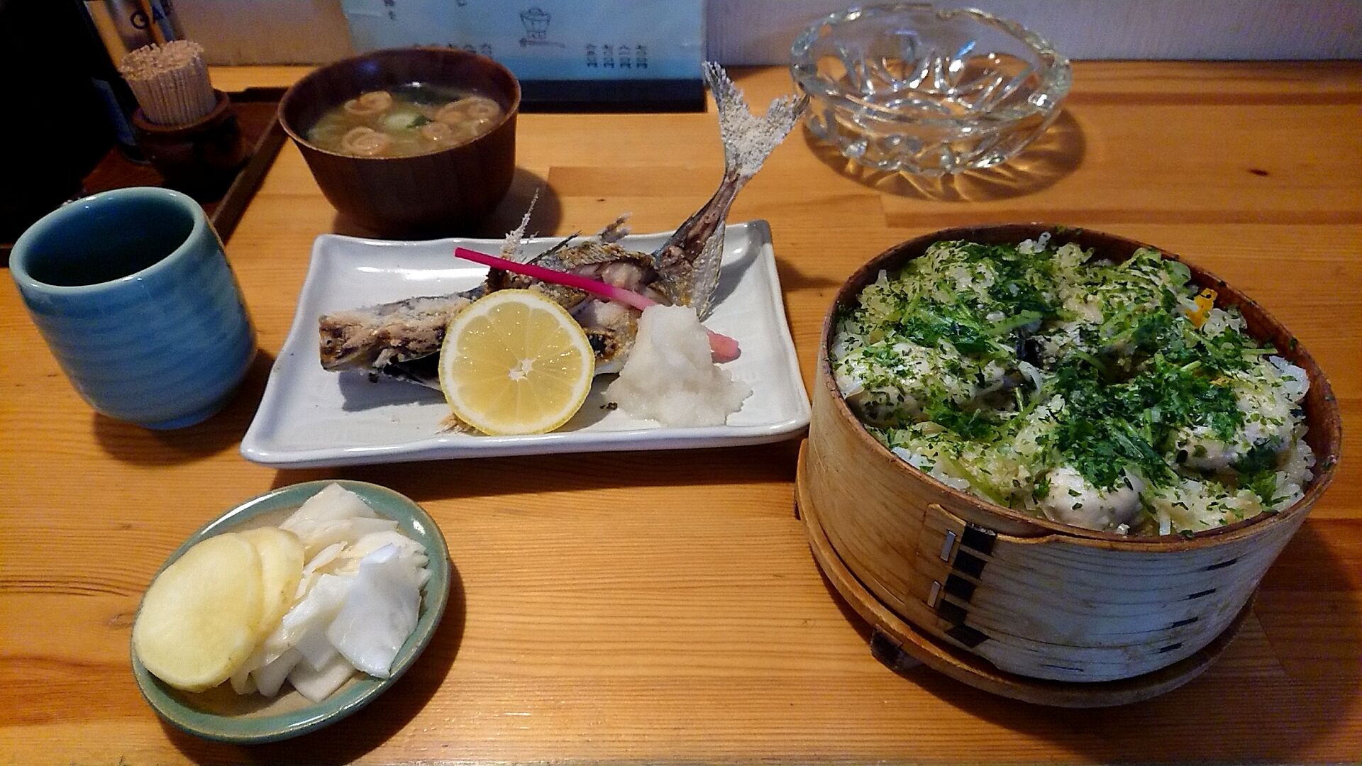 牡蠣わっぱめしに追加でアジの焼魚もオーダーしちゃいました。