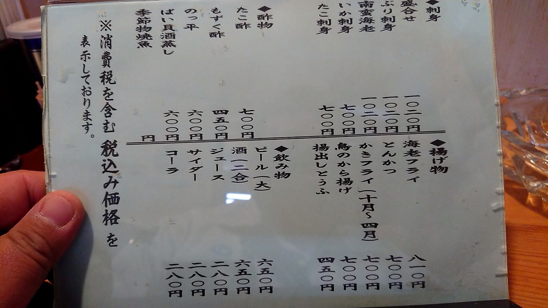 メニューを見ると、刺身に酢の物に揚げ物・・・