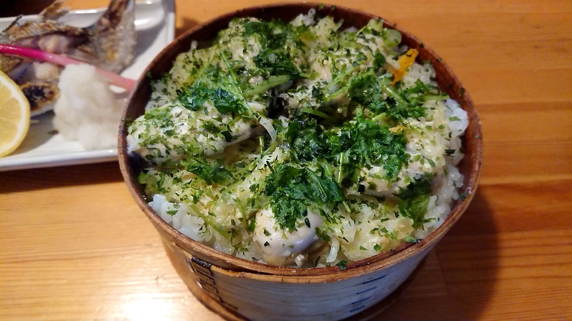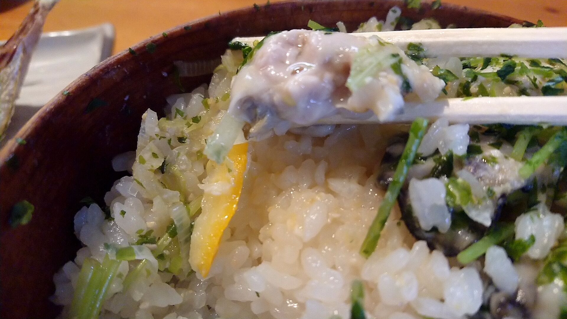 牡蠣エキスを吸い込んだご飯の上にアジと大根おろしを乗せて食べちゃったり!!