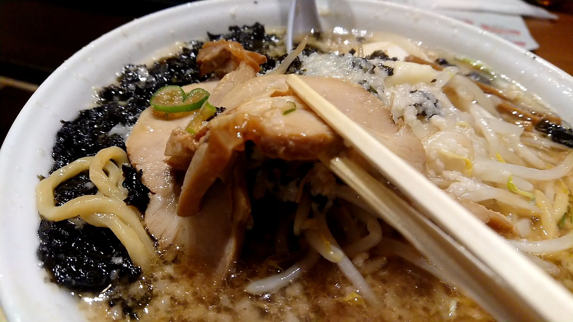 たっぷりの岩海苔と背脂が凄いですね。