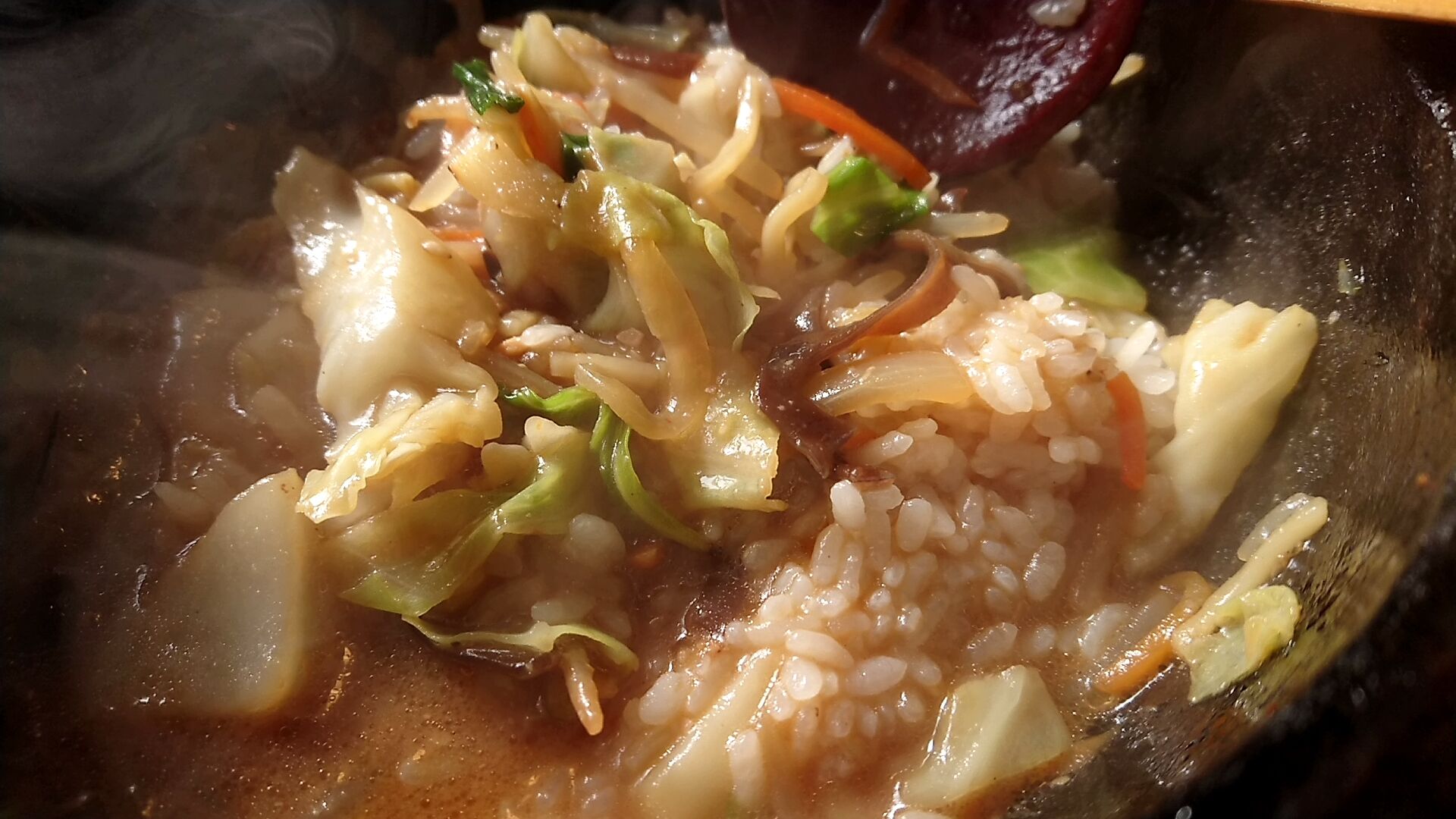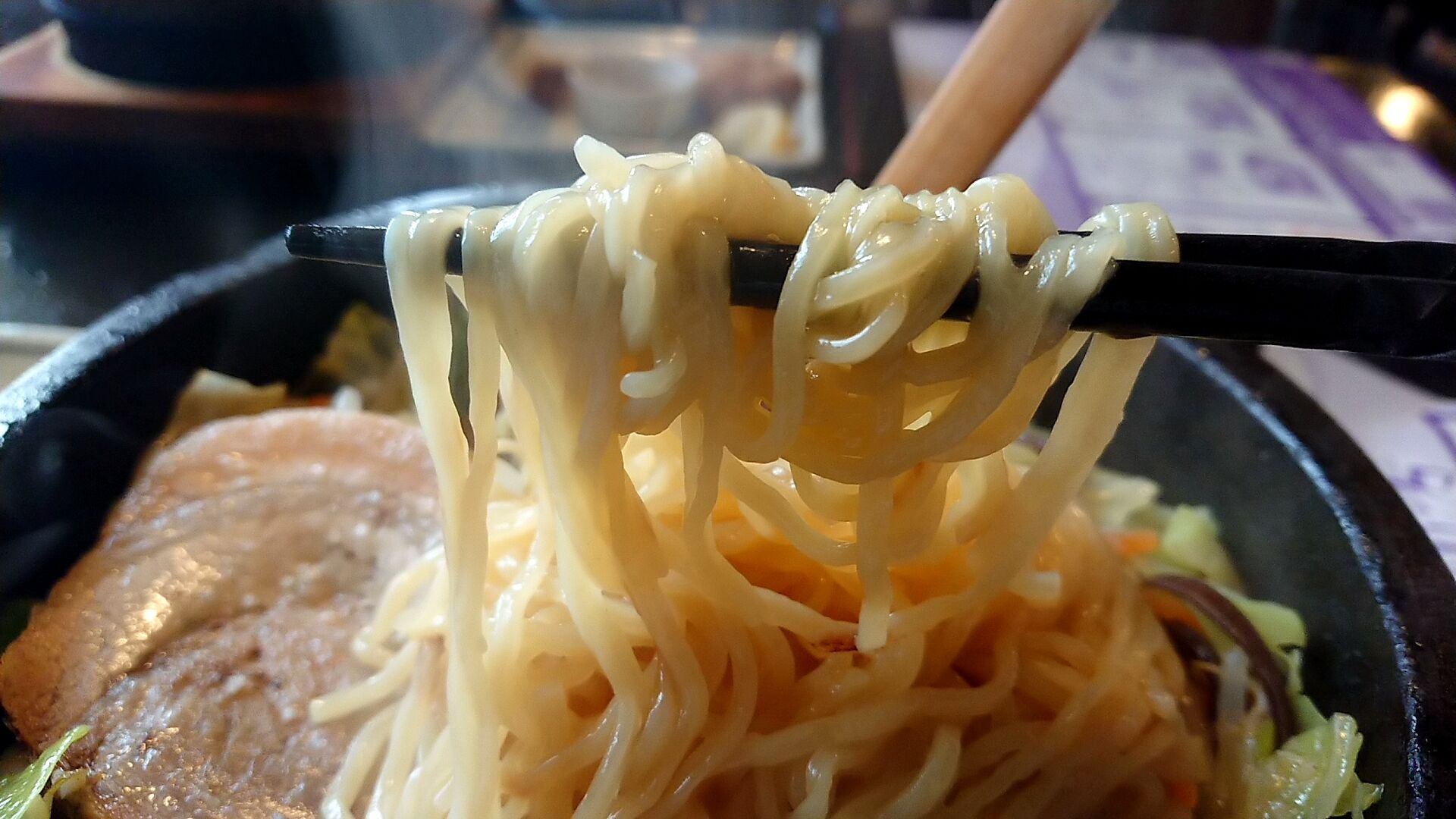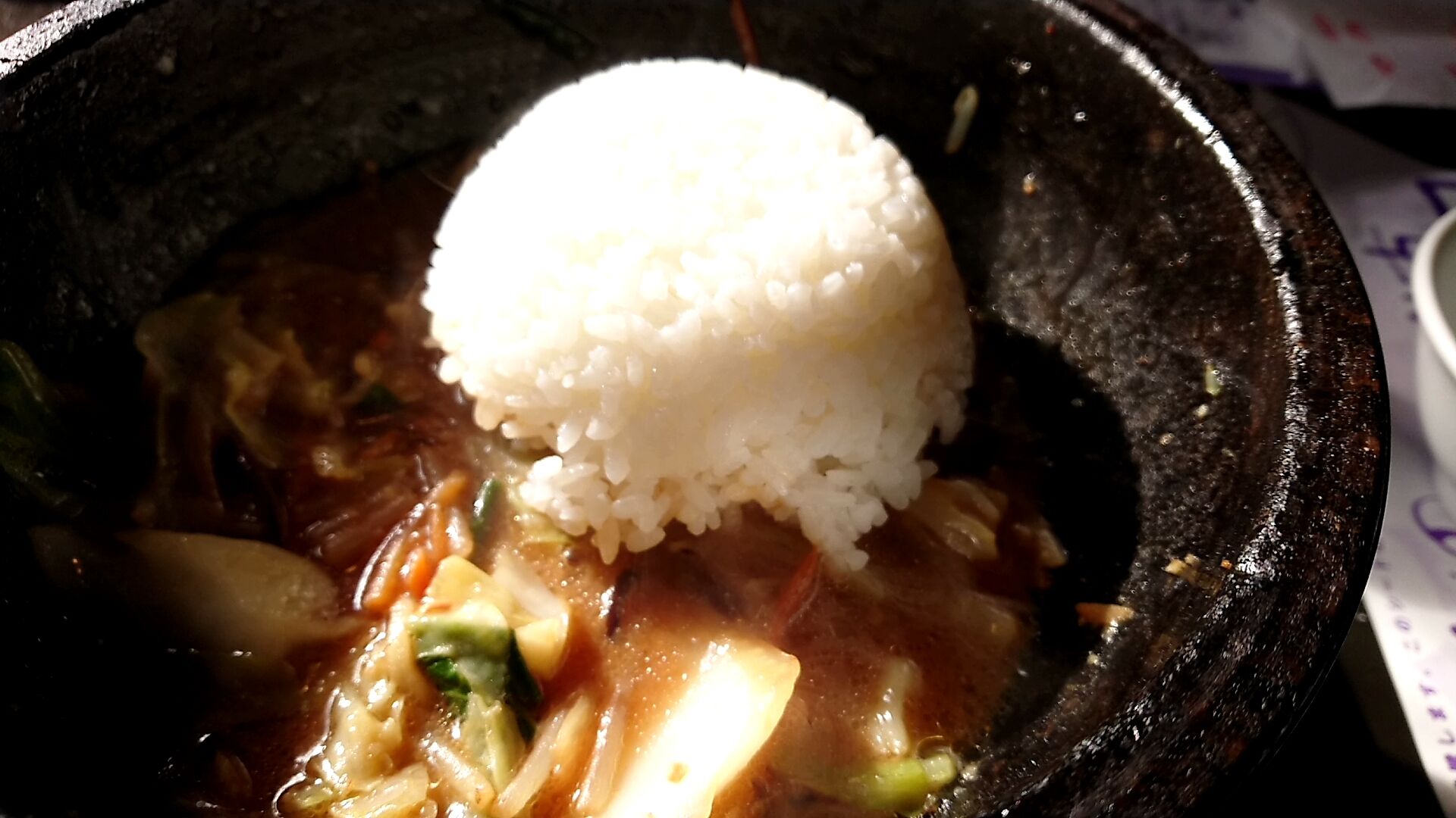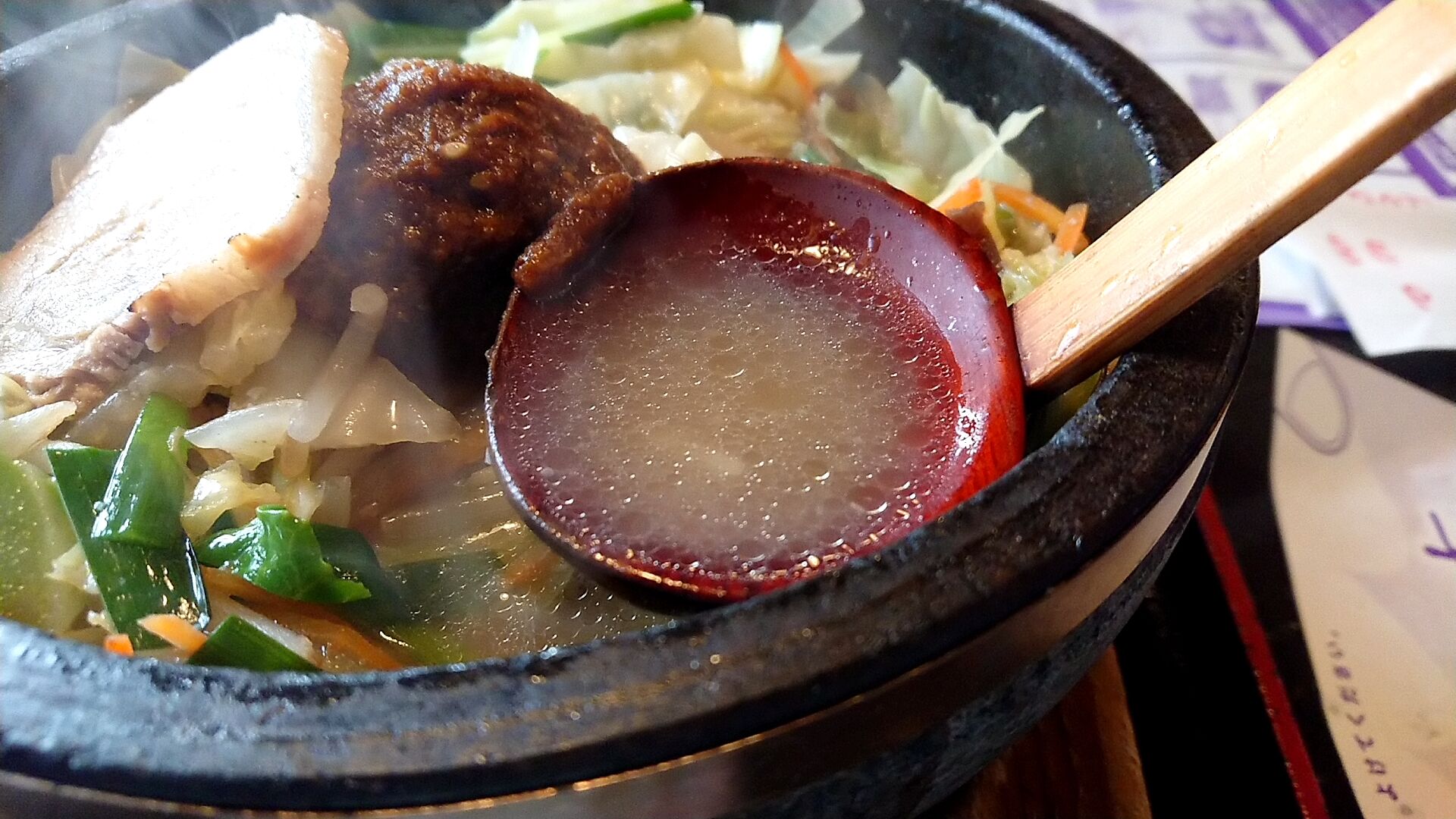 石焼で焼かれた分と味噌スープを注いで待つので、少しだけ麺が固まってしまう部分があるのは