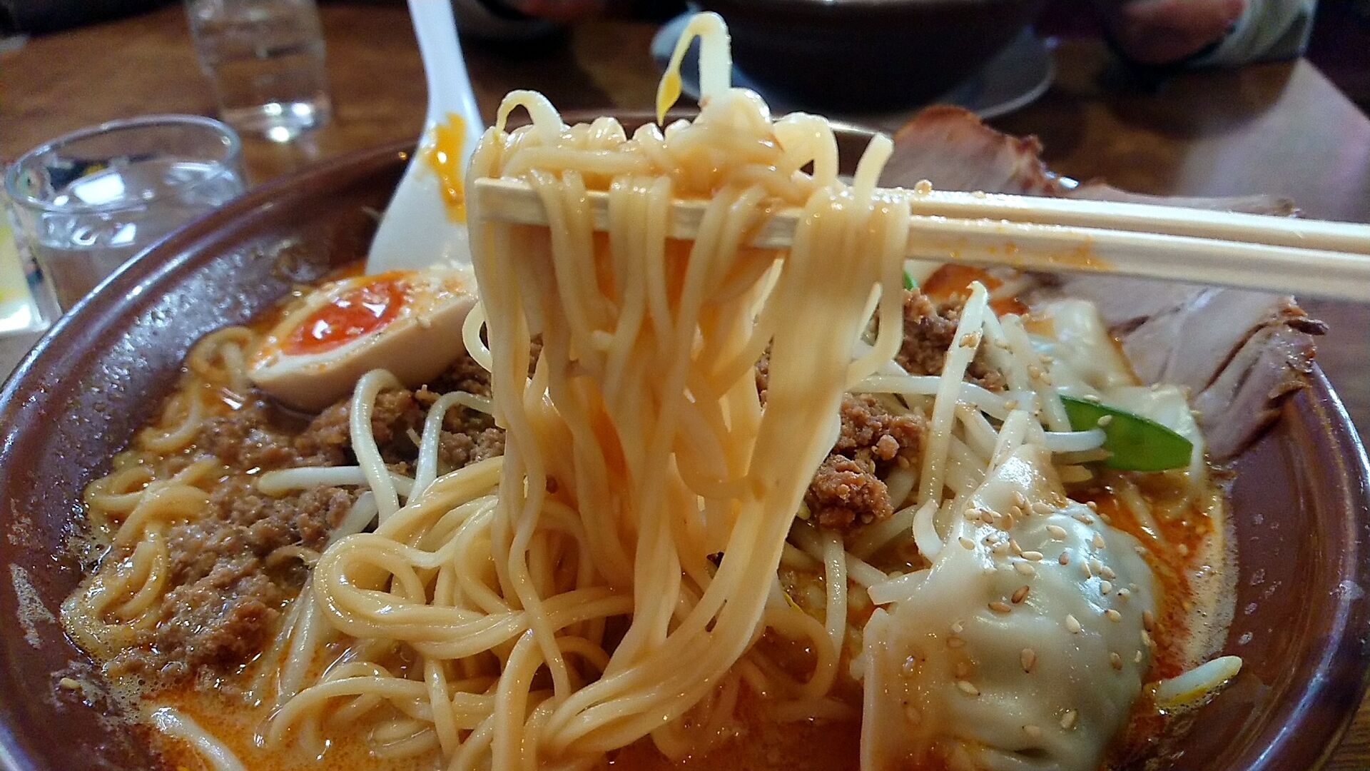 んおお!!結構濃厚なゴマのクリーミーでコクのあるスープ、ピリ辛で食欲も増します。