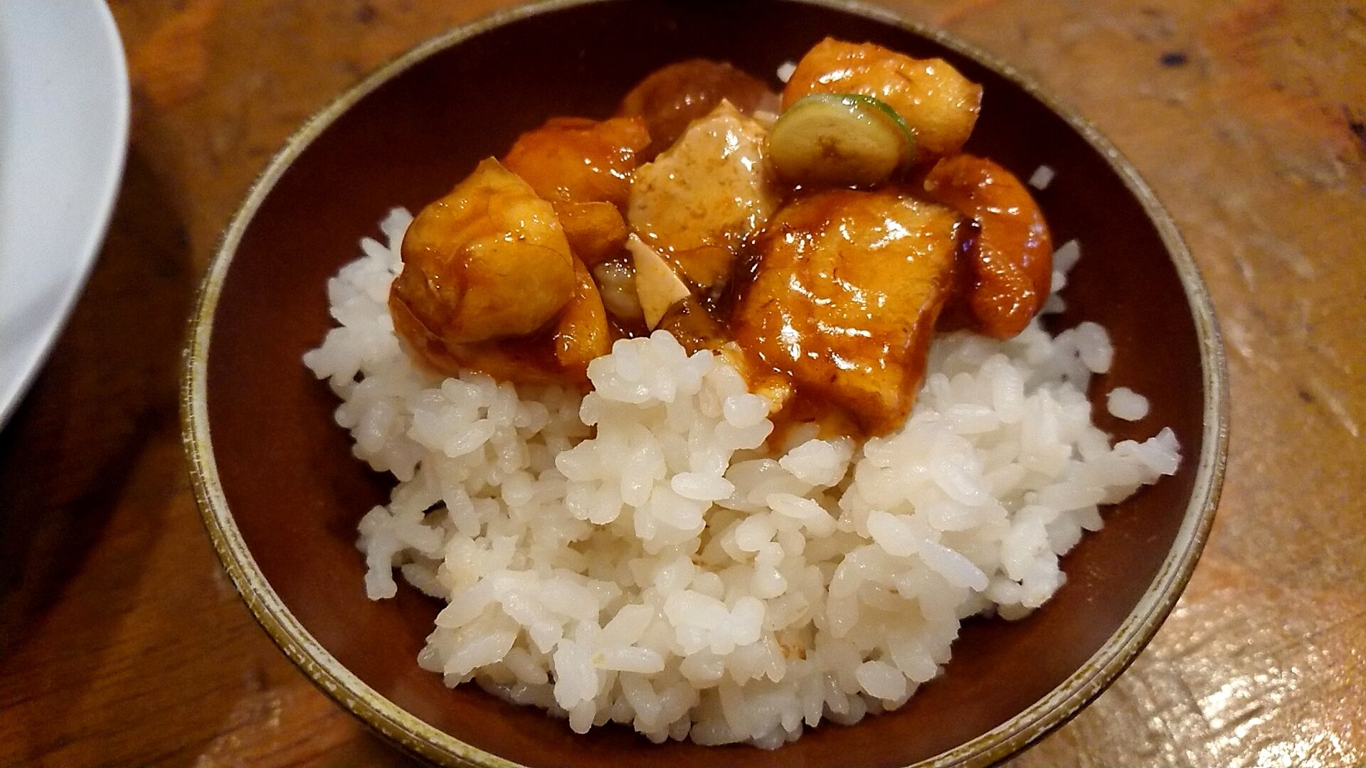豆腐だけでなく、チャーシューやキクラゲ、油揚げも入っているようです。