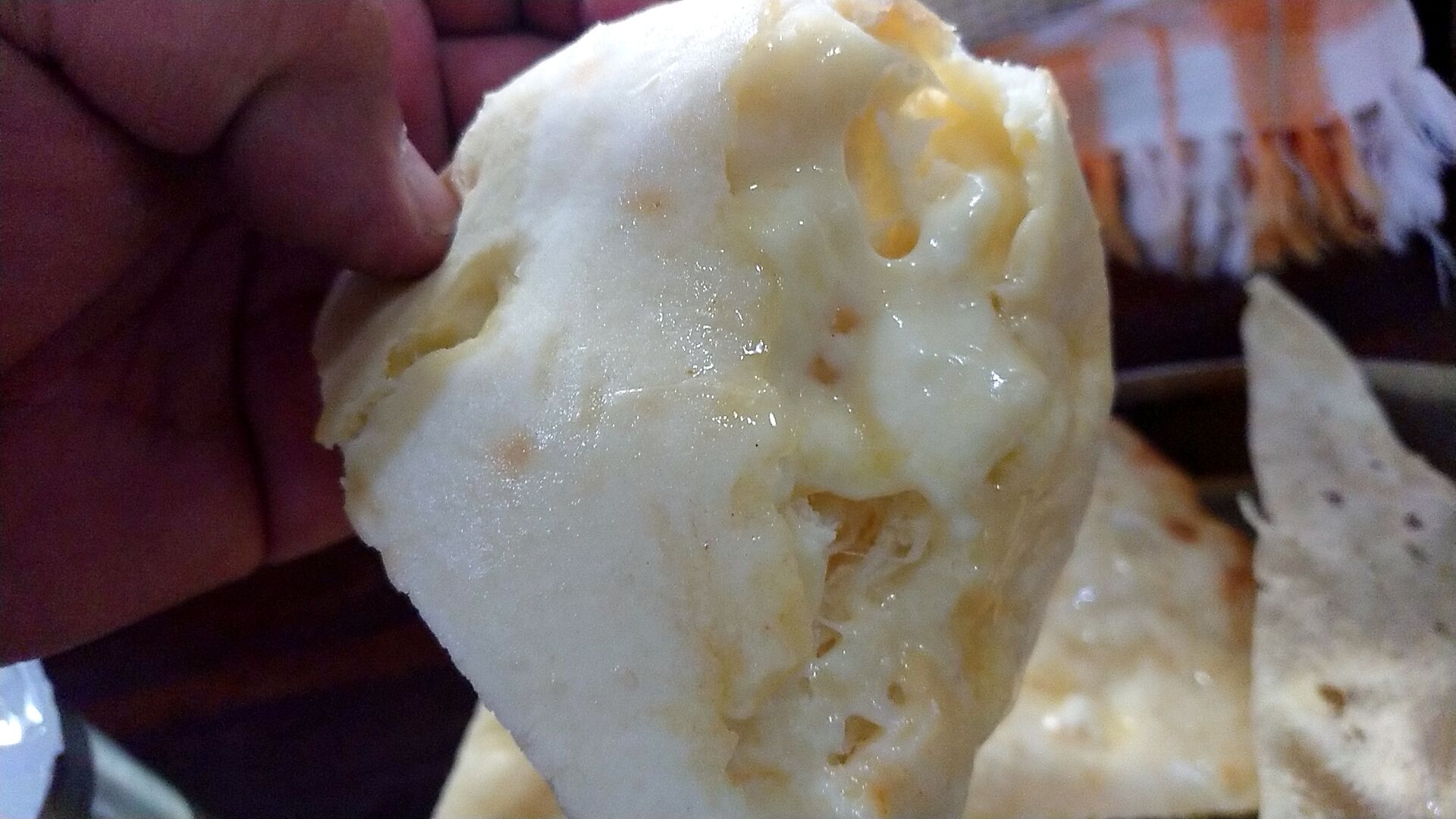 チーズナンは4つに切られて提供されますが、切り口からとろ〜りチーズが覗きます。