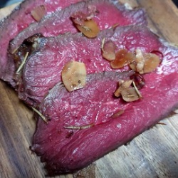 初めての鹿肉!!?の続き。元日は鹿肉の低温調理と自作ベーコンで晩酌
